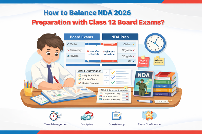 It is not too hard to balance between NDA 2026 preparation and Class 12 board exams provided that you adhere to an organized NDA 2026 study plan, focus on similar topics, and use effective NDA time management strategies. NDA syllabus matches with Class 12 syllabus a great deal, particularly Mathematics, English and General Knowledge which is why students can study both exams simultaneously with a thought-out NDA daily schedule and a dedicated Class 12 board and NDA plan. The trick is in the clarity of concepts, strict revision, and intelligent choice of resources.