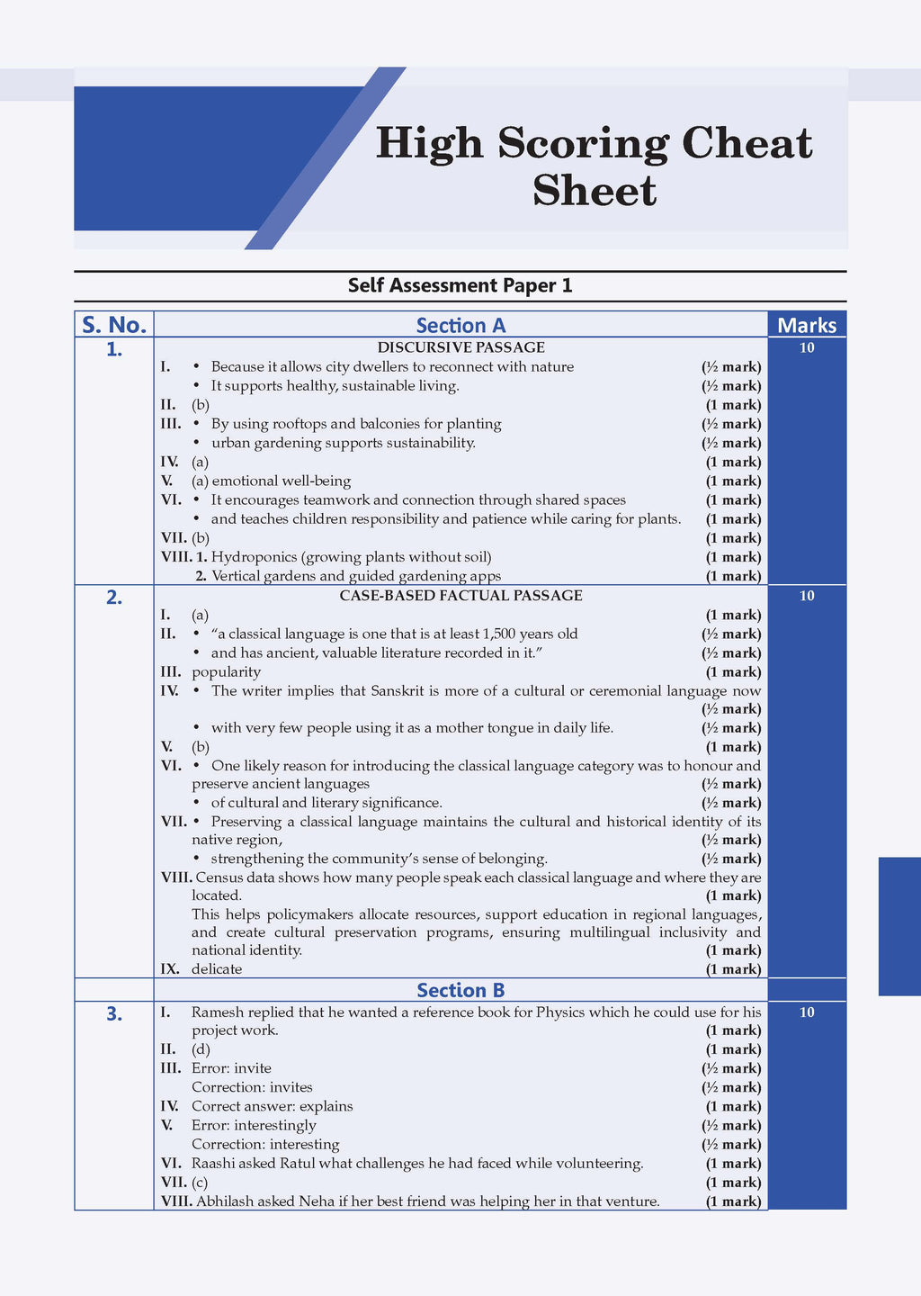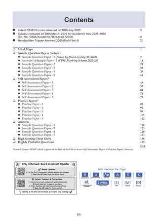 BENEFITS OF THIS SERIES• 10+5 Full-Length Papers with Latest CBSE BlueprintStrictly aligned with 2025 – 26 Board Sample Paper design & Syllabus.• 50% Competency Focused Based + 20% HEQs (Highly Expected Questions)Includes predicted, exam-relevant original questions tagged as HEQ.• Smart Tags for Every QuestionDifficulty Level • Time to Solve • Bloom’s Level.•Fully Solved with Marking Scheme & Answering TipsValue points, Commonly Made Errors & Answering Tips, and 20% Topper’s answers included.• 5 Most Likely Practice Papers like the Real ExamPapers mimic actual board exam pattern with instructions, timing, and difficulty levels—exact CBSE blueprint followed.• On Tips Notes + Smart QR IntegrationQuick glimpse at each concept for revision Scan for Fast Revision Notes for all Chapters• "Why This Answer?" Explanations for MCQsDetailed logic for correct options and also for incorrect answers helps build concept clarity and avoid silly mistakes.• "Why are Most Probable Questions from each Chapter? " Chapter-wise Most Probable Questions designed for a quick recap after full preparation — helping you boost confidence and ensure 100% exam readiness