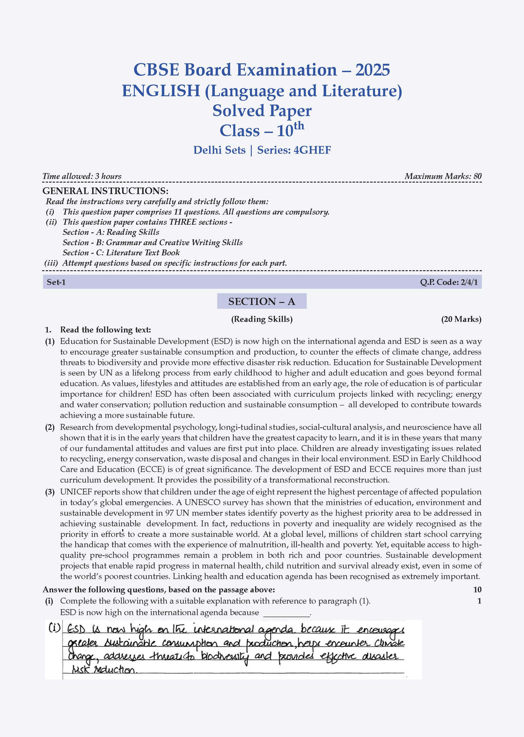 CBSE 15 Sample Question Papers Class 10 English Language & Literature for 2026 Board Exam (As per CBSE Sample Question Paper issued on 30 July 2025), recommended by 2025 CBSE Toppers with Chapter wise Highly Probable Questions