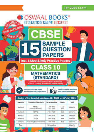 CBSE 15 Sample Question Papers Class 10 Mathematics Standard for 2026 Board Exam (As per CBSE Sample Question Paper issued on 30 July 2025), recommended by 2025 CBSE Toppers with Chapter wise Highly Probable Questions