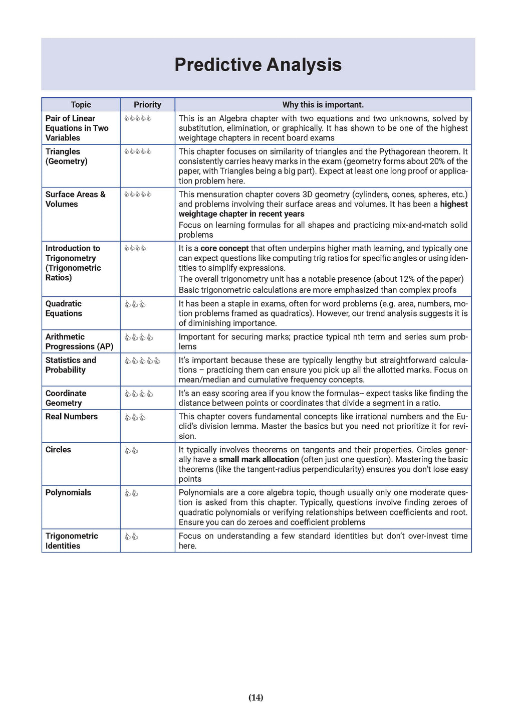 BENEFITS OF THIS SERIES• 10+5 Full-Length Papers with Latest CBSE BlueprintStrictly aligned with 2025 – 26 Board Sample Paper design & Syllabus.• 50% Competency Focused Based + 20% HEQs (Highly Expected Questions)Includes predicted, exam-relevant original questions tagged as HEQ.• Smart Tags for Every QuestionDifficulty Level • Time to Solve • Bloom’s Level.•Fully Solved with Marking Scheme & Answering TipsValue points, Commonly Made Errors & Answering Tips, and 20% Topper’s answers included.• 5 Most Likely Practice Papers like the Real ExamPapers mimic actual board exam pattern with instructions, timing, and difficulty levels—exact CBSE blueprint followed.• On Tips Notes + Smart QR IntegrationQuick glimpse at each concept for revision Scan for Fast Revision Notes for all Chapters• "Why This Answer?" Explanations for MCQsDetailed logic for correct options and also for incorrect answers helps build concept clarity and avoid silly mistakes.• "Why are Most Probable Questions from each Chapter? " Chapter-wise Most Probable Questions designed for a quick recap after full preparation — helping you boost confidence and ensure 100% exam readiness