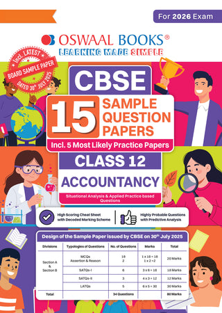 CBSE 15 Sample Question Papers Class 12 Accountancy for 2026 Board Exam (As per CBSE Sample Question Paper issued on 30 July 2025), recommended by 2025 CBSE Toppers with Chapter wise Highly Probable Questions