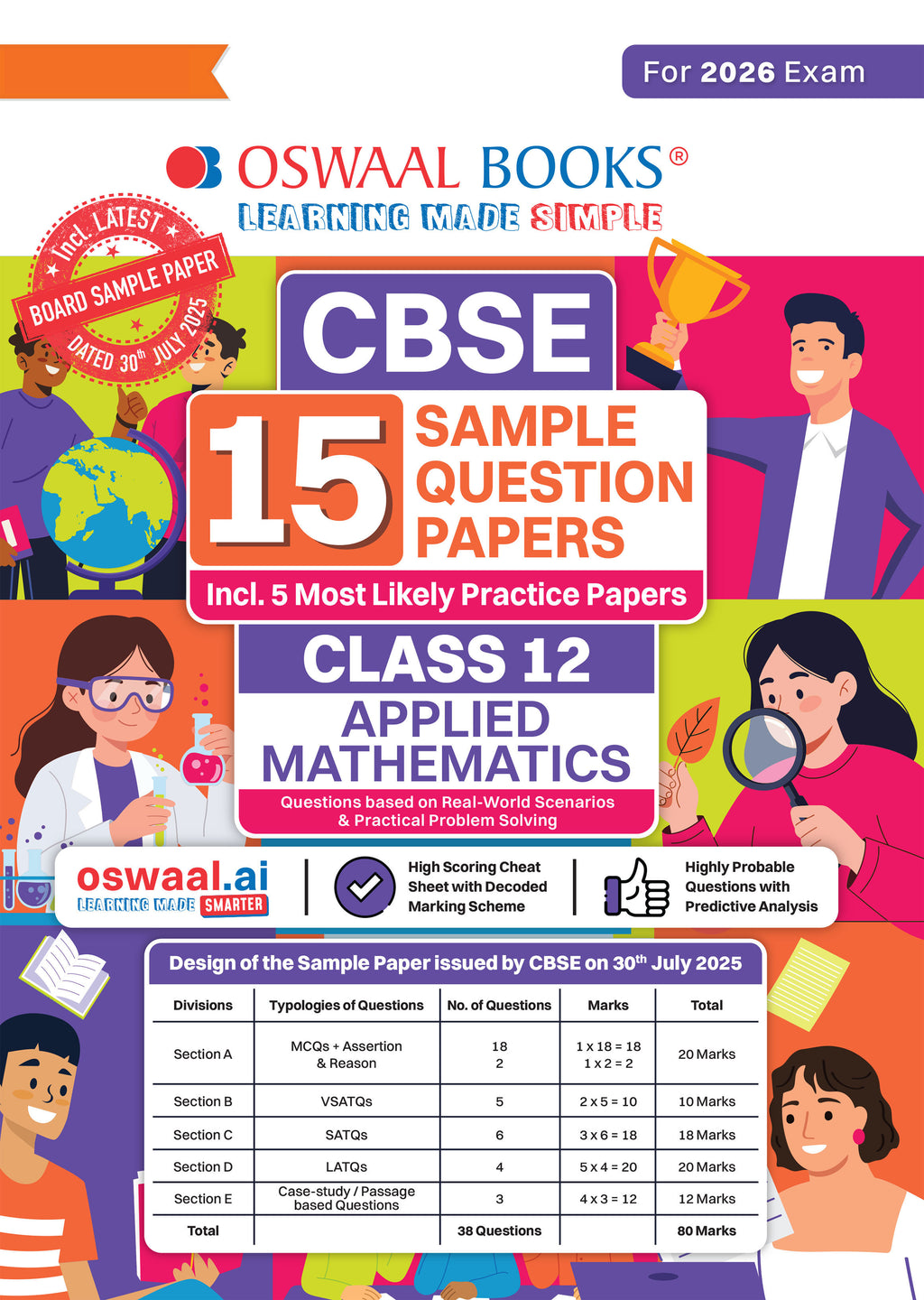 Our CBSE 15 Sample Question Papers Class 12 for Applied Mathematics for 2026 , based on the latest CBSE sample paper issued on 30 July 2025, is meticulously designed to help students master every aspect of board exams. Every page of this book speaks about tricks, topper insights, board exam analytics, and smart pedagogy that will boost your exam preparedness.