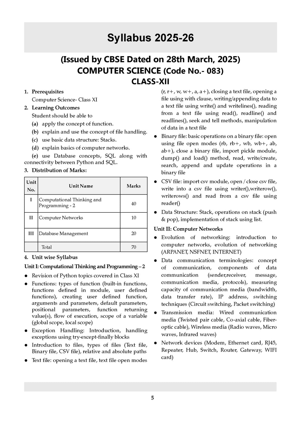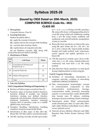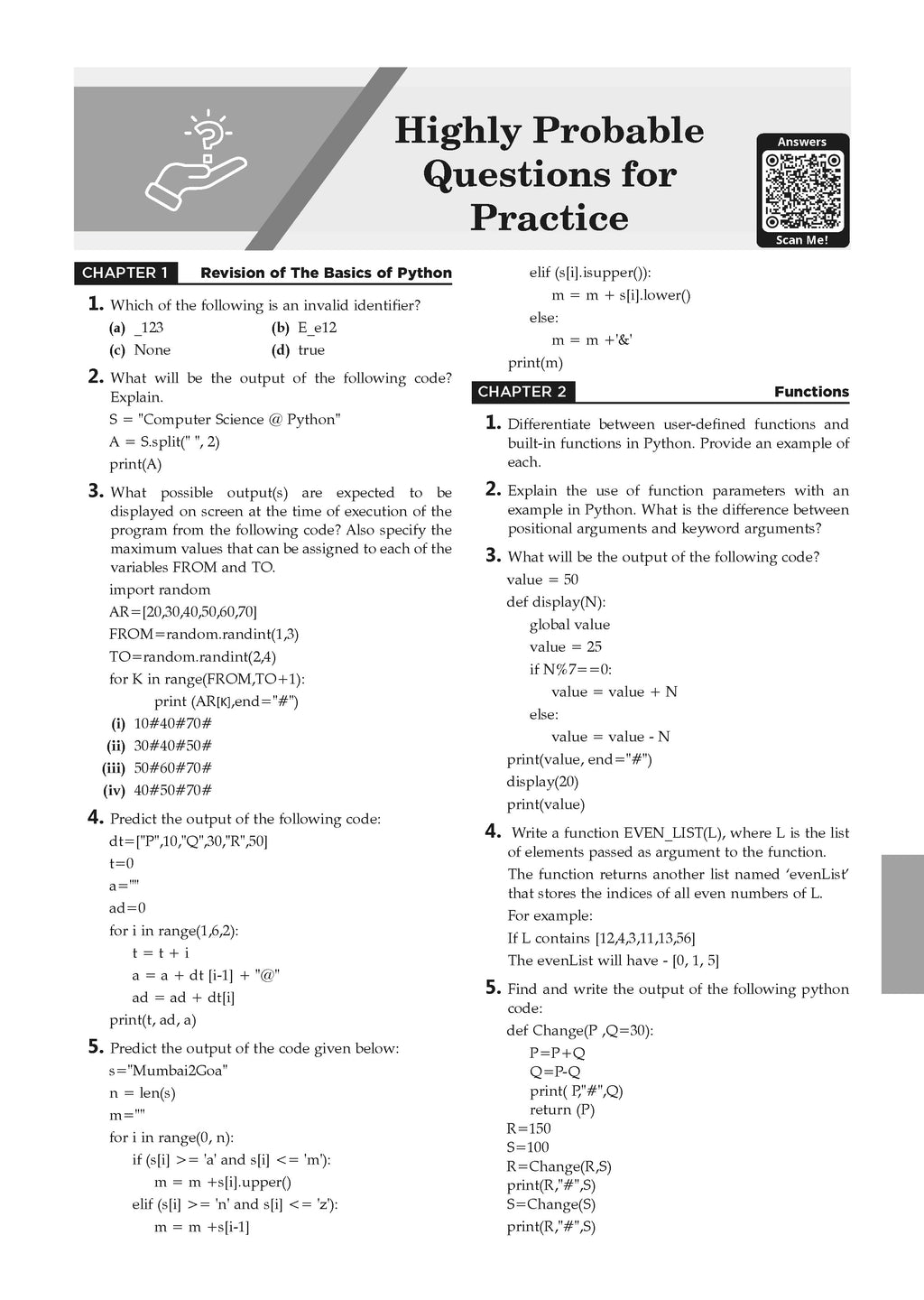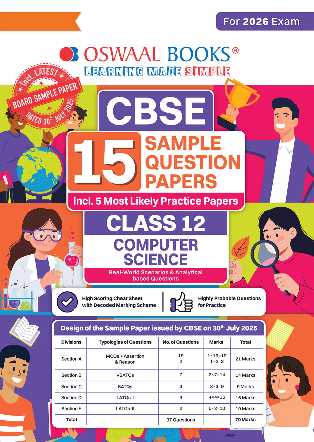 CBSE 15 Sample Question Papers Class 12 Computer Science for 2026 Board Exam (As per CBSE Sample Question Paper issued on 30 July 2025), recommended by 2025 CBSE Toppers with Chapter wise Highly Probable Questions
