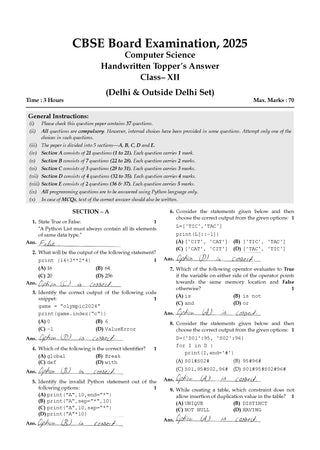 Hand-Written Toppers’ Answers: Our computer science sample paper class 12 2026 includes hand-written toppers’ answers, which help you write structured answers that attract the attention of the examiners.