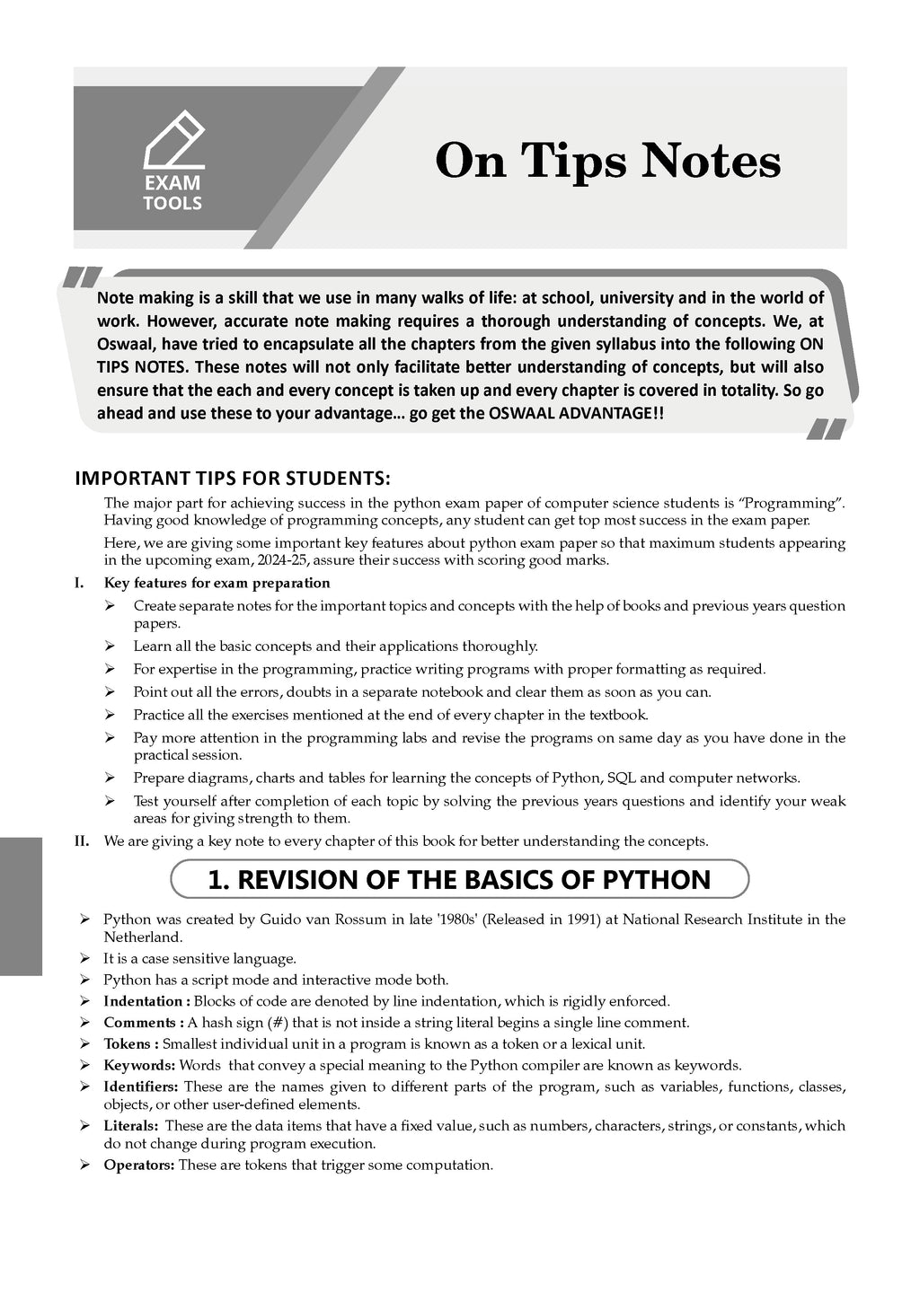 On-Tips Notes: Include crisp revision material on key concepts, such as Python, so that you can effectively have last-minute revision.