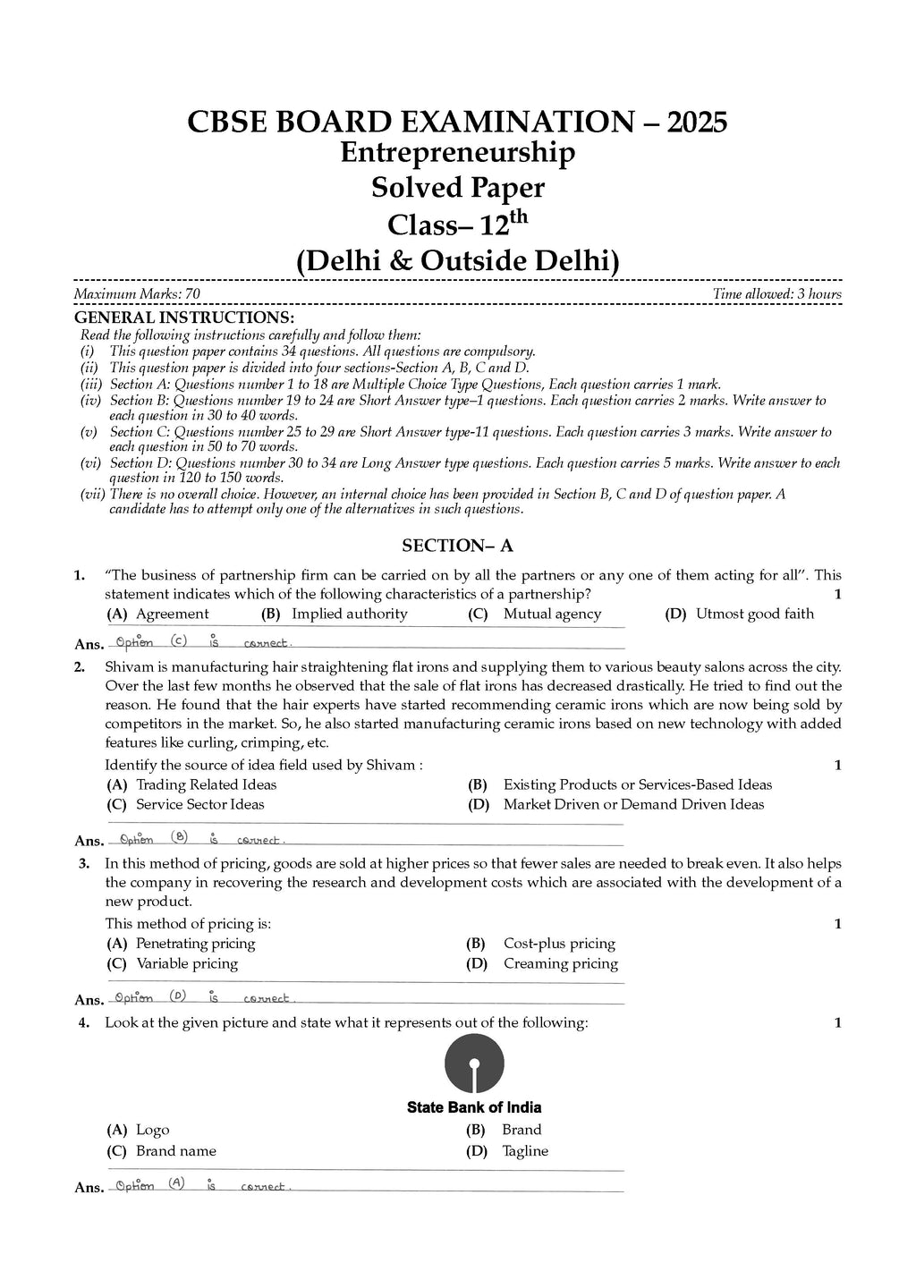 CBSE 15 Sample Question Papers Class 12 Entrepreneurship for 2026 Board Exam (As per CBSE Sample Question Paper issued on 30 July 2025), recommended by 2025 CBSE Toppers with Chapter wise Highly Probable Questions
