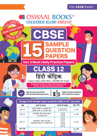CBSE 15 Sample Question Papers Class 12 Hindi Core for 2026 Board Exam (As per CBSE Sample Question Paper issued on 30 July 2025), recommended by 2025 CBSE Toppers with Chapter wise Highly Probable Questions