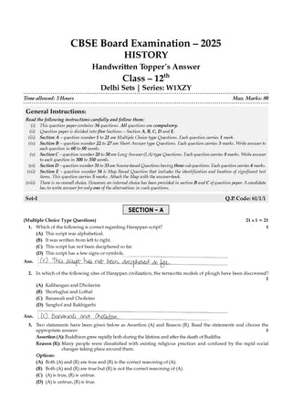 CBSE 15 Sample Question Papers Class 12 History for 2026 Board Exam (As per CBSE Sample Question Paper issued on 30 July 2025), recommended by 2025 CBSE Toppers with Chapter wise Highly Probable Questions
