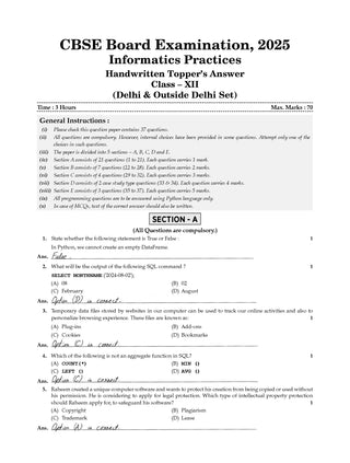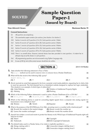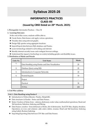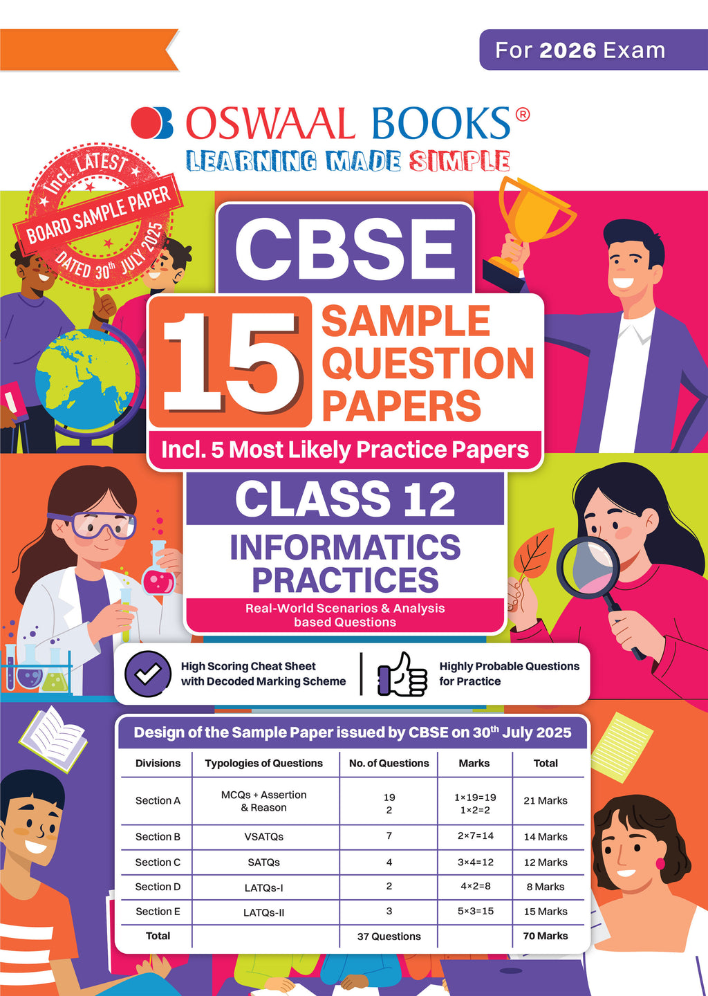 CBSE 15 Sample Question Papers Class 12 Informatics Practices for 2026 Board Exam (As per CBSE Sample Question Paper issued on 30 July 2025), recommended by 2025 CBSE Toppers with Chapter wise Highly Probable Questions