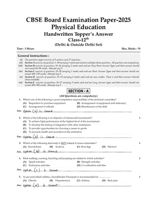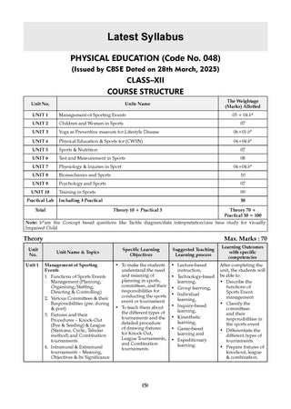 CBSE 15 Sample Question Papers Class 12 Physical Education for 2026 Board Exam (As per CBSE Sample Question Paper issued on 30 July 2025), recommended by 2025 CBSE Toppers with Chapter wise Highly Probable Questions