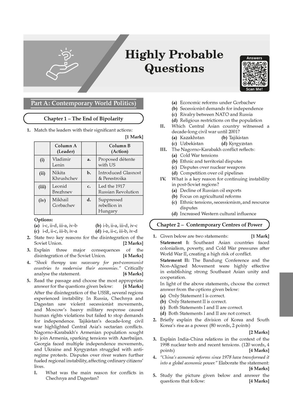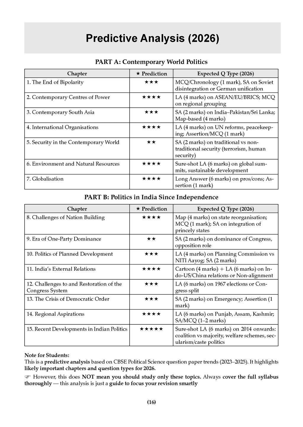 Most Probable Questions: Each CBSE Class 12 Sample Paper Political Science 2026 includes chapter-wise probable questions for a complete recap.