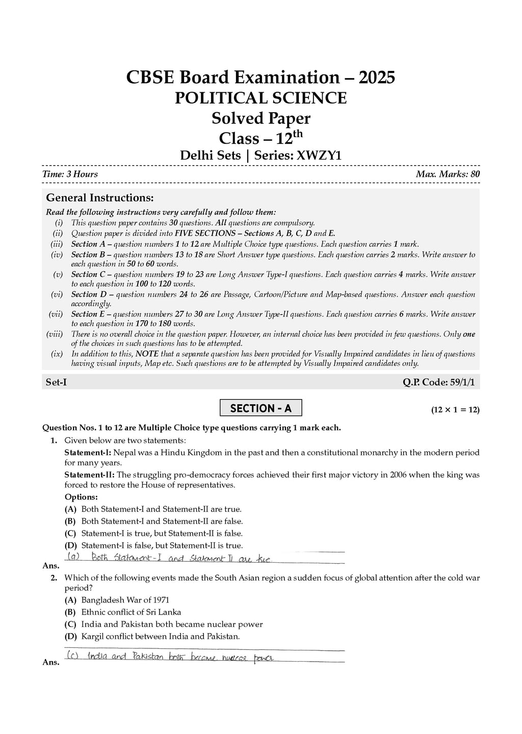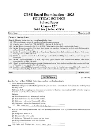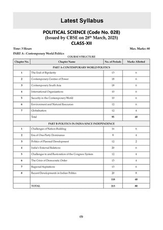 CBSE 15 Sample Question Papers Class 12 Political Science for 2026 Board Exam (As per CBSE Sample Question Paper issued on 30 July 2025), recommended by 2025 CBSE Toppers with Chapter wise Highly Probable Questions