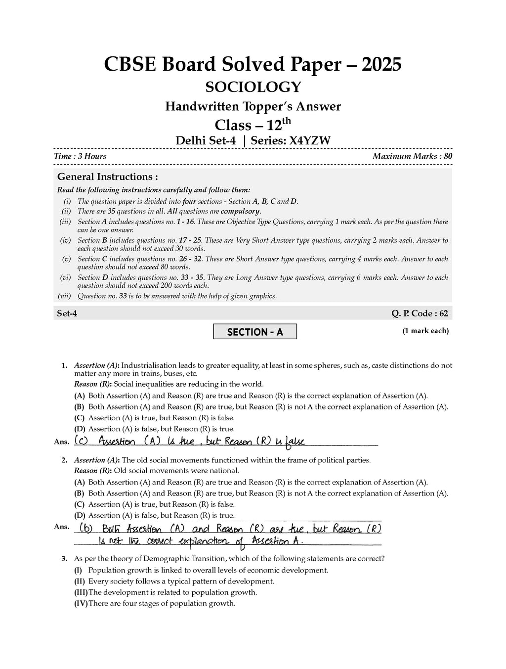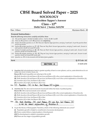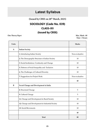 CBSE 15 Sample Question Papers Class 12 Sociology for 2026 Board Exam (As per CBSE Sample Question Paper issued on 30 July 2025), recommended by 2025 CBSE Toppers with Chapter wise Highly Probable Questions