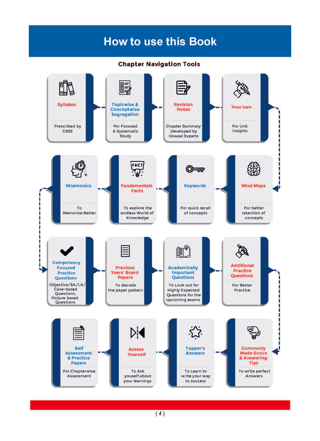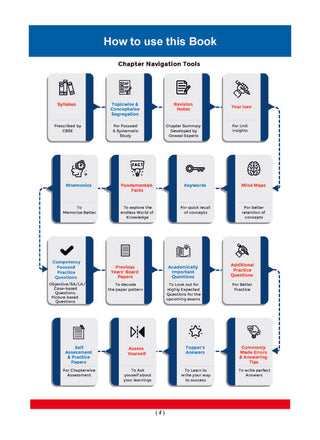 • Guided Learning: Learning Objectives and Study Plan for Focused Preparation• Effective Revision: Mind Maps & Revision Notes to Simplify Retention and Exam Readiness • Competency Practice: 50% CFPQs aligned with Previous Years’ Questions and Marking Scheme for Skill-Based Learning and Assessments • Self-Assessment: Chapter-wise/Unit-wise Tests; through Self-Assessment and Practice Papers • Interactive Learning with 1500+Questions and Board Marking Scheme Answers• With Oswaal 360 Courses and Mock Papers to enrich the learning journey further