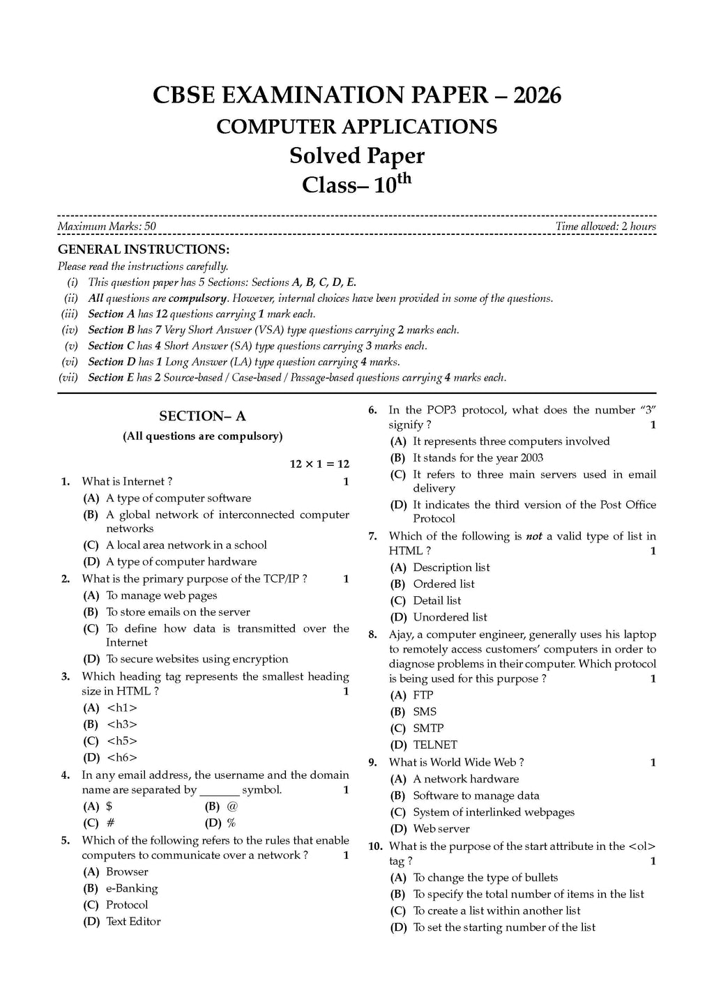 CBSE Previous Years Papers Computer Applications, Class 10 | Year-wise (2022–2026) | Latest Syllabus April 2026 | NCERT & Competency-Based Questions | For 2027 Exam | Oswaal AI