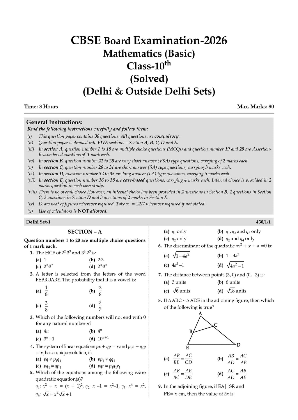 CBSE Previous Years Papers Mathematics Basic, Class 10 | Year-wise (2020–2026) | Latest Syllabus April 2026 | NCERT & Competency-Based Questions | For 2027 Exam | Oswaal AI