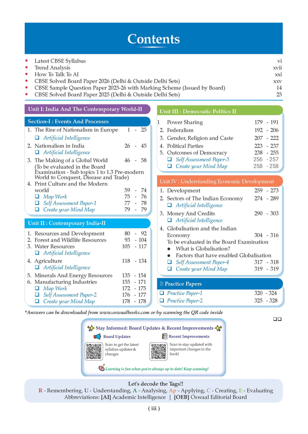 • 100% Updated Content: with the Latest 2027 Syllabus & Questions typologies. • Competency-Based Learning: Includes Competency-Focused (Analytical & Application) Practice Questions • Efficient Revision: Topic-wise revision notes and smart mind maps for quick, effective learning. • Extensive Practice: With 1000+ Questions & Self-Assessment Papers. • Concept Clarity: 300+ key concepts, supported by interactive concept videos and mnemonics for deeper understanding. • Exam Readiness: Expert answering tips and examiner’s comments to refine your response strategy. • AI-powered personalised practice by Oswaal AI that identifies learning gaps and helps improve performance through targeted support. • Practice papers and self-assessment tools to simulate real exam conditions and track preparation progress.