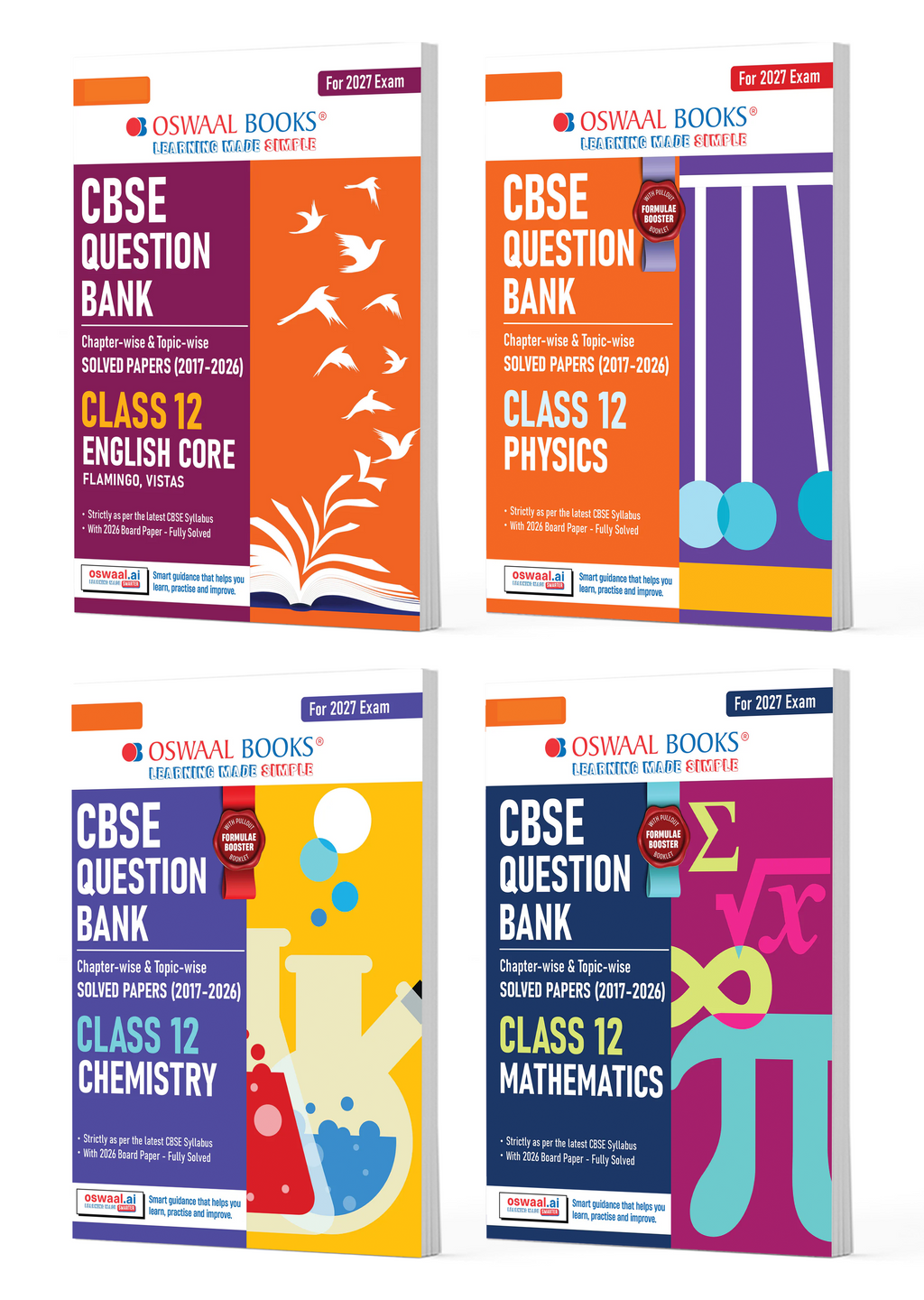 CBSE Question Bank for Class 12 English Core, Physics, Chemistry & Maths (Set of 4) Chapter & Topic-wise: Solved Papers (2017-2026) | Includes 2026 solved Papers | With oswaal.ai | For 2027 Exam