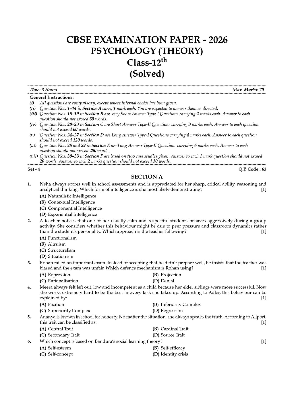 CBSE Question Bank for Class 12 Psychology | Chapter-wise and Topic-wise: Solved Papers (2017-2026) | Includes 2026 Papers- fully solved | With oswaal.ai | For 2027 Exam