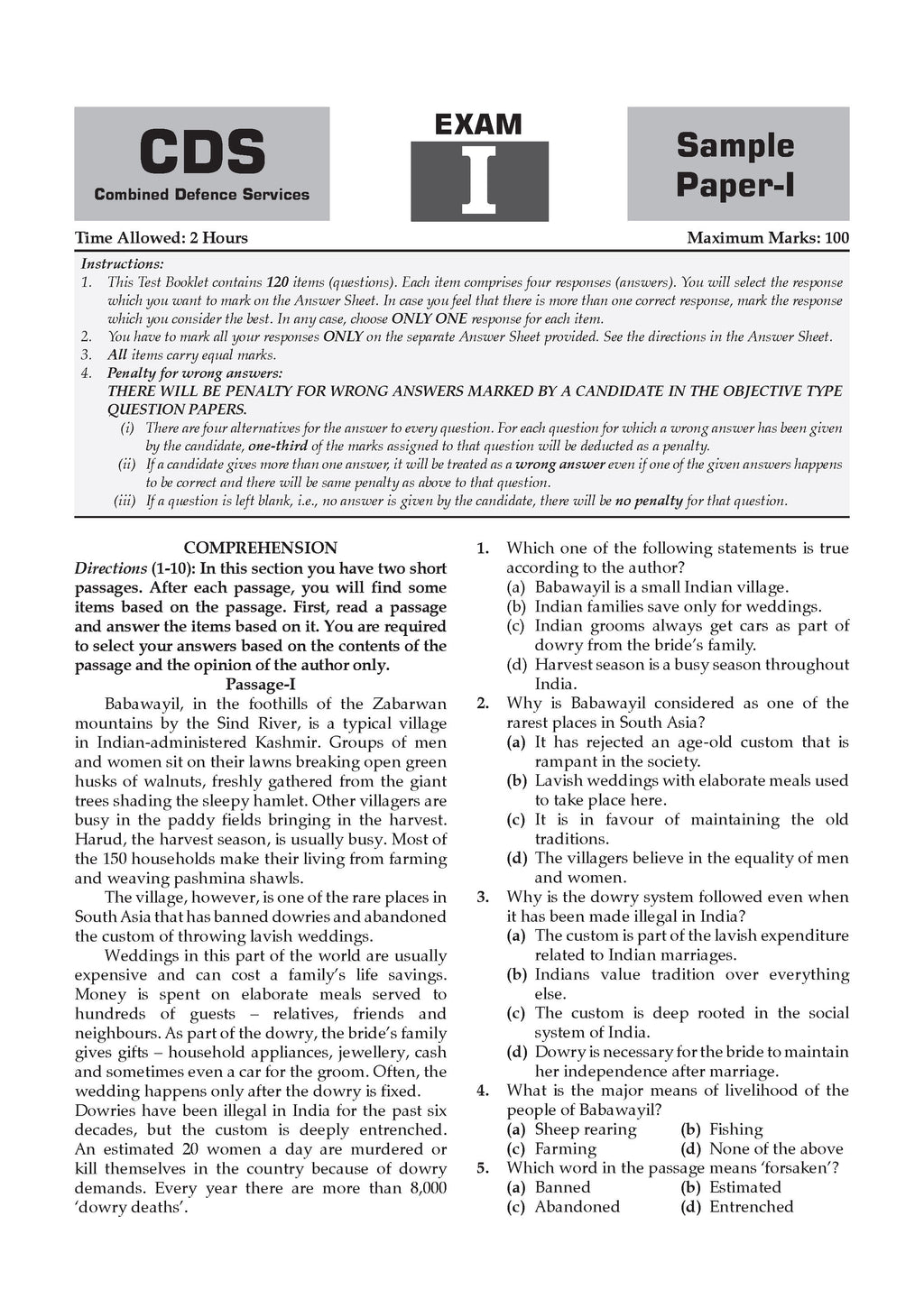 CDS (Combined Defence Services) 15 Solved Papers Year-wise 2018-2025 (I & II) | English