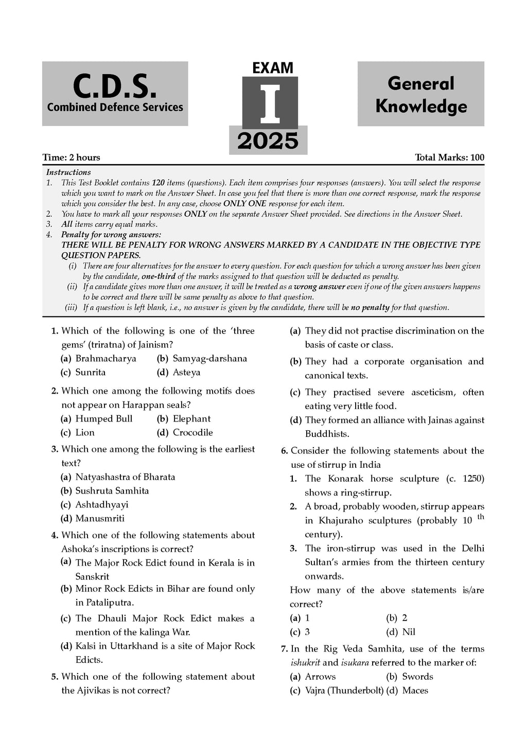 CDS (Combined Defence Services) 16 Solved Papers Year-wise 2018-2025 (I & II) | General Knowledge
