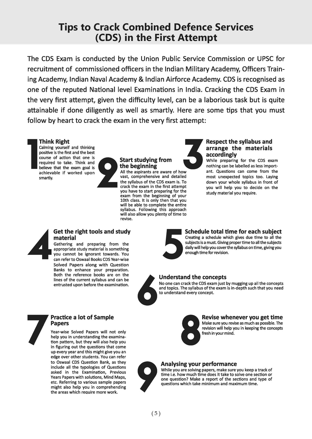 • Crisp Revision with Smart Mind Maps• Valuable Exam Insights with Expert Tips to crack CDS in the first attempt• Concept Clarity with Detailed Explanations • 100% Exam Readiness with Previous Years Chapter-wise Trend Analysis [2018-2025 (I & II)]• Exclusive Advantage of Oswaal360 Courses and Mock Papers to enrich your learning journey further.