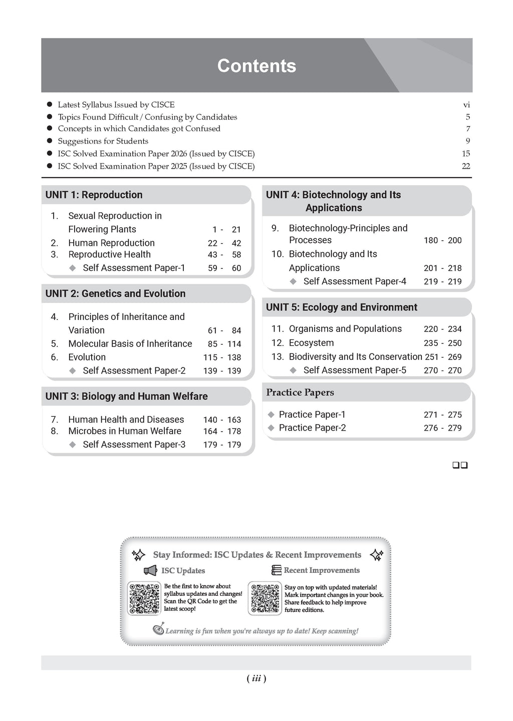 Systematic Coverage: Chapter-wise and topic-wise questions designed strictly as per the latest ISC syllabus.Exam-Oriented Practice: Competency-driven and case/application-based questions aligned with CISCE examination patterns.Effective Revision Tools: Mind maps, concise revision notes, mnemonics, and concept videos to aid quick recall.Clear Answer Presentation: Fully solved answers supported by a suggestive marking scheme for better understanding.AI-Enabled Learning: Personalised practice to detect learning gaps and enhance performance.Confidence for Exams: A balanced approach of learning, practice, and self-evaluation to ensure exam readiness.