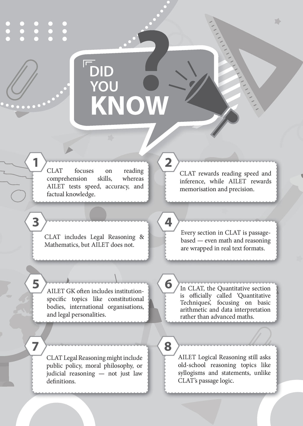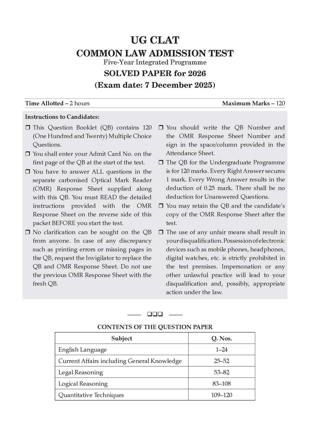 Benefits of the product:• 100% Updated with UG CLAT & AILET Fully Solved 2026 Papers • Extensive Practice with 1600+ Questions with detailed explanations• Valuable Exam Insights with Hints, Shortcuts & Expert Tips to crack UG CLAT & AILET on the first attempt.• Concept Clarity: Learn Concepts through Detailed Explanations• 100% Exam Readiness with Section-wise Trend Analysis (2021 - 2026)• Strategies for your Preparation with NLU’s Cut-offs (2021 – 2025)