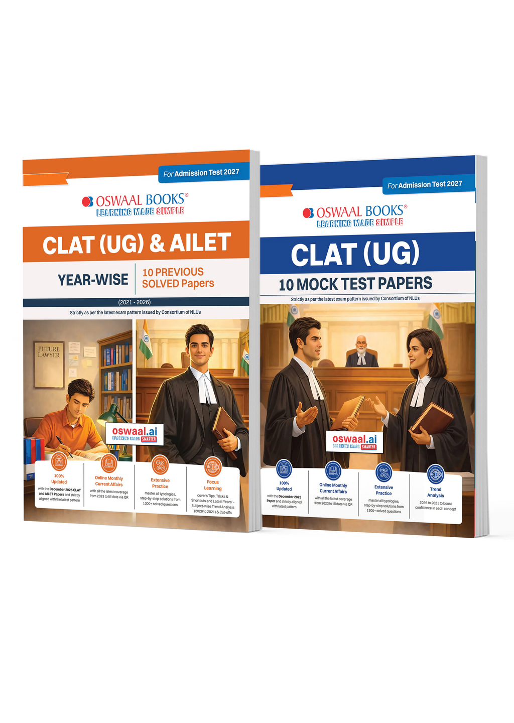 CLAT (UG) & AILET Year-wise 10 Previous Solved Papers + 10 Mock Test Papers (Set of 2 books) | For 2027 Admission Test