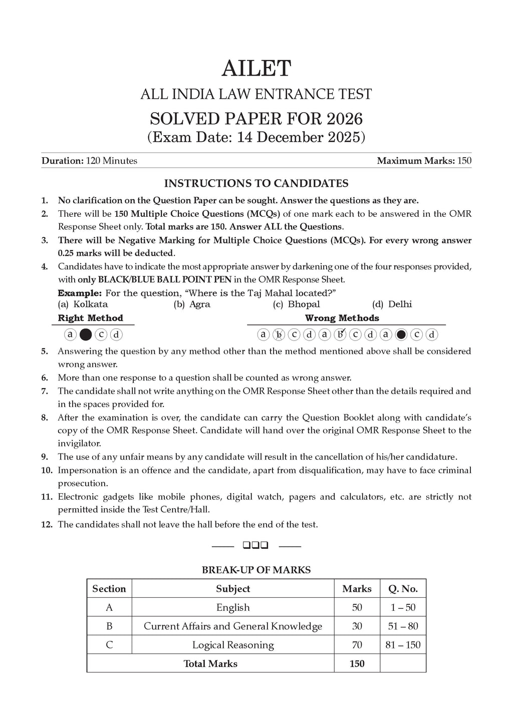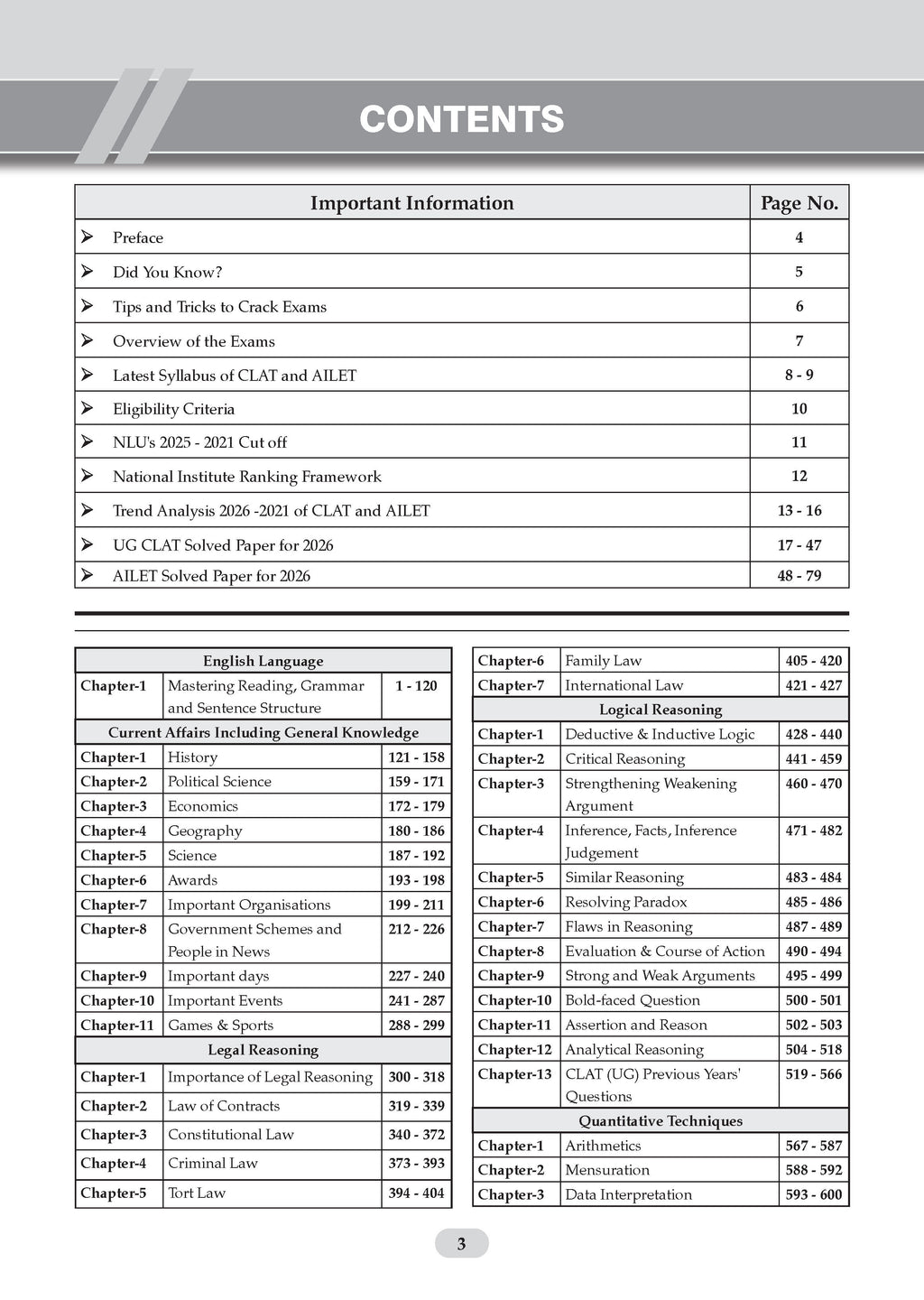Benefits of the product:• 100% Updated with UG CLAT & AILET Fully Solved 2026 Papers • Extensive Practice with 1600+ Questions with detailed explanations• Valuable Exam Insights with Hints, Shortcuts & Expert Tips to crack UG CLAT & AILET on the first attempt.• Concept Clarity: Learn Concepts through Detailed Explanations• 100% Exam Readiness with Section-wise Trend Analysis (2021 - 2026)• Strategies for your Preparation with NLU’s Cut-offs (2021 – 2025)