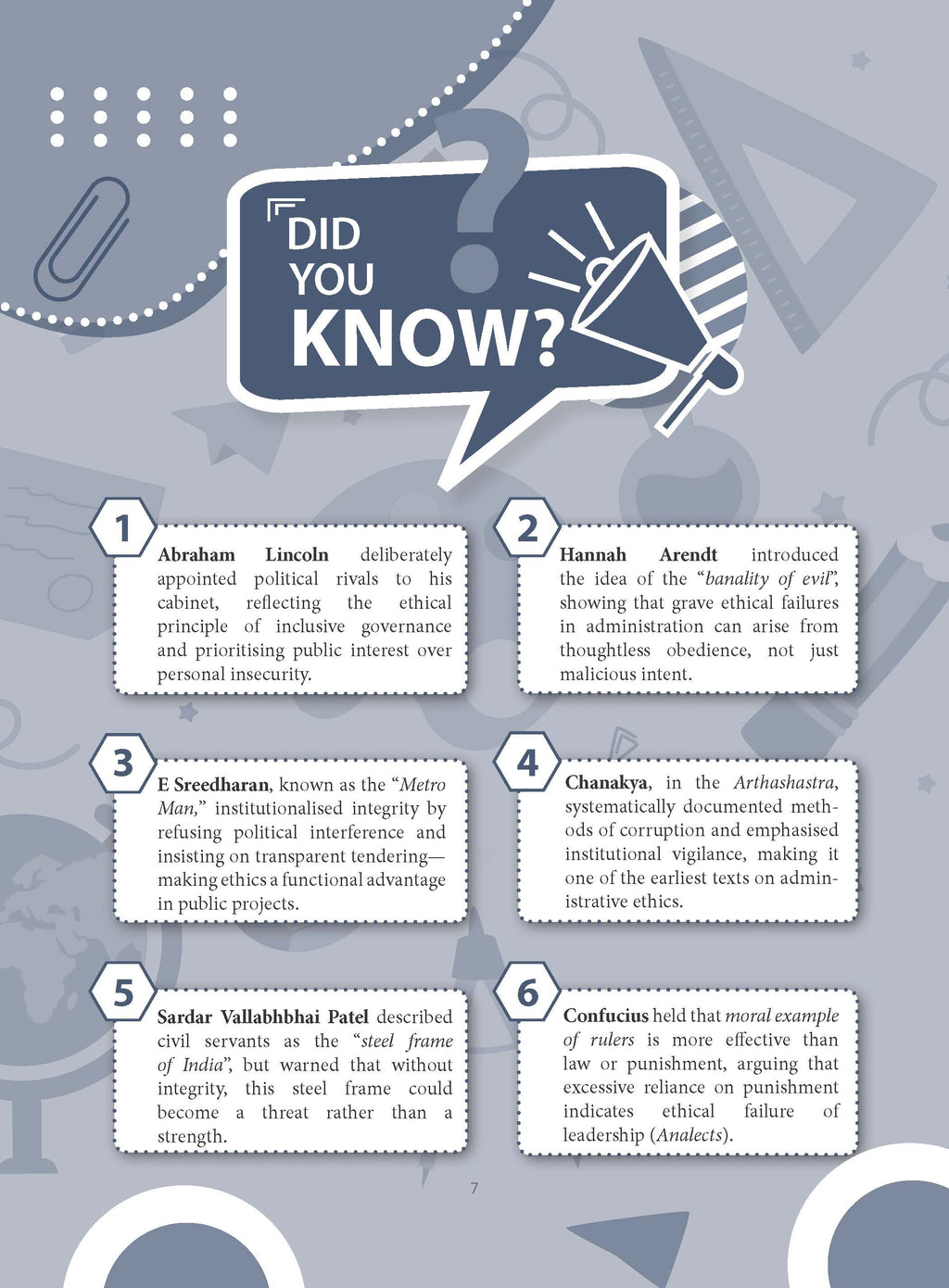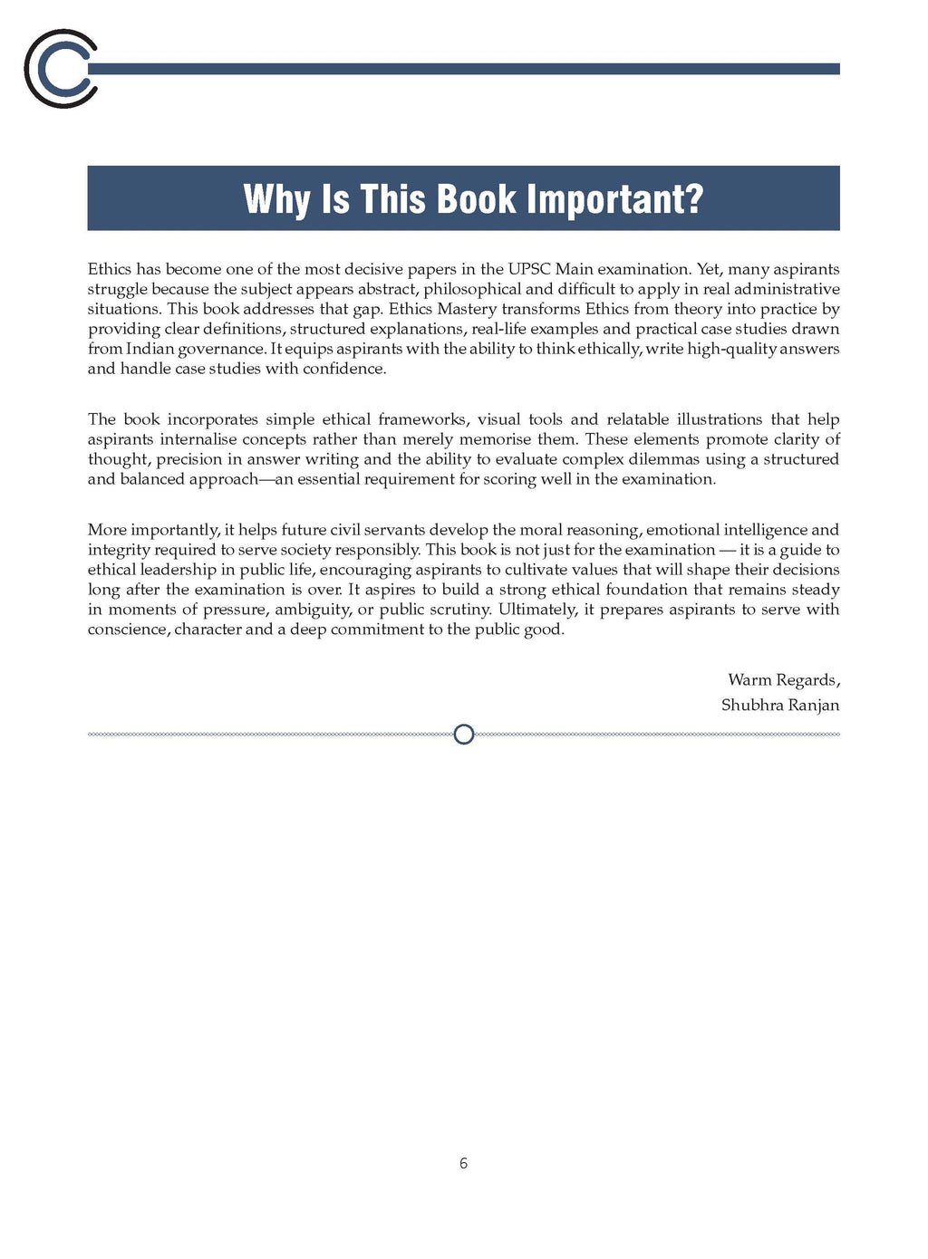 • Conceptual Clarity: Standard definitions and simplified explanations ensure precise understanding of ethics topics.• Structured Answer Writing: Ready-to-use frameworks help present balanced and analytical answers.• Thinker Integration: Relevant moral thinkers enrich answers with philosophical depth.• Applied Ethics Practice: Real governance cases strengthen case-study solving ability.• Fast Revision Support: Keywords, quotes, and examples enable last-mile Mains revision.• Score Maximization: Integrated concepts, frameworks, and applications enhance answer