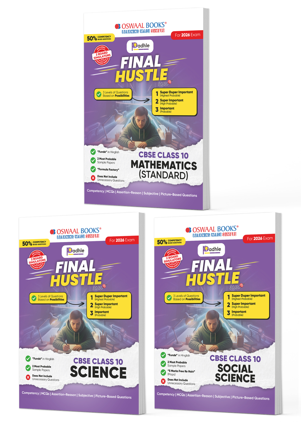 Final Hustle for CBSE Class 10 by Padhle with Board Exam Simulators | Science, Social Science, Maths Standard 2026 Final Preparation with Super Duper Imp Qs, Sample Papers, Mind Maps (Set Of 3)