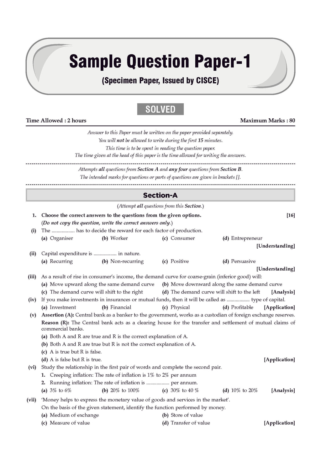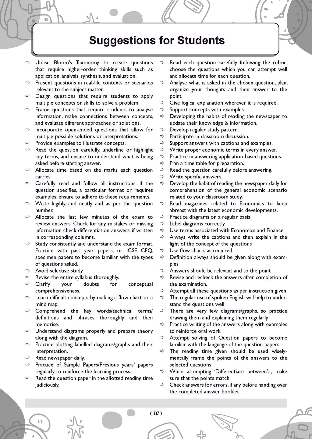 ICSE 10 Sample Question Papers Class 10 Economics for Board Exam 2026 (Strictly aligned with CISCE Latest Specimen Paper 2026), Competency-Based Questions, Mind Maps, On-Tips Notes, Solved MCQs, Revision with Explanations