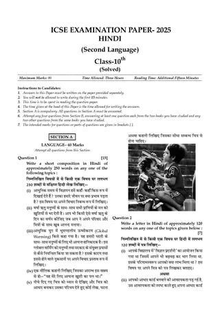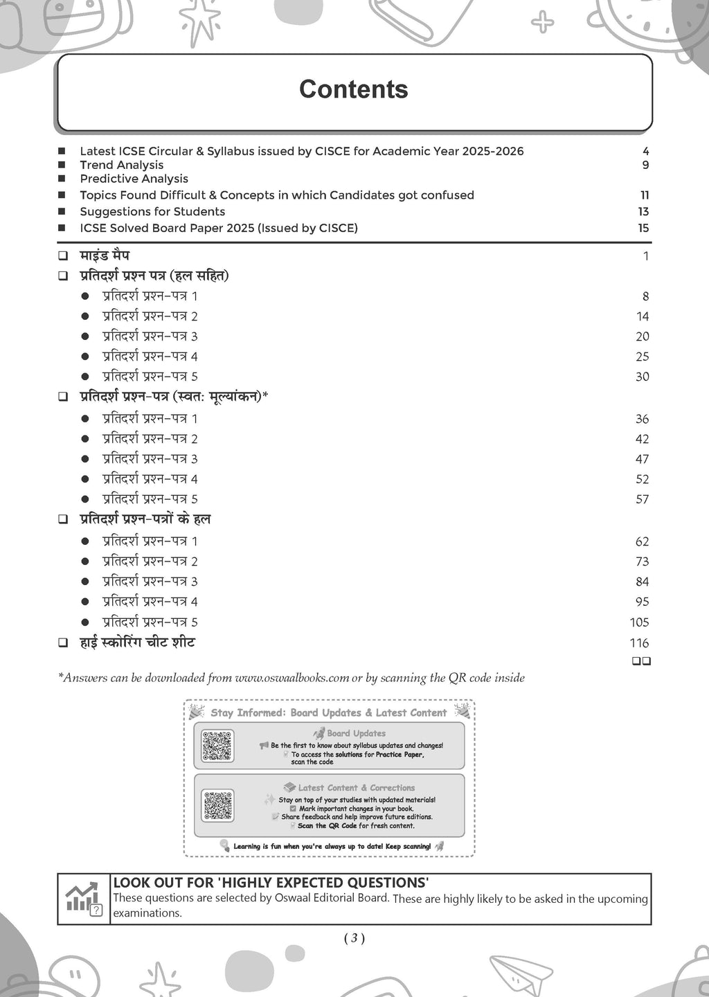 ICSE 10 Sample Question Papers Class 9 & 10 Hindi for Exam 2026 (Strictly aligned with CISCE Latest Specimen Paper 2026), Competency-Based Questions, Mind Maps, On-Tips Notes, Solved MCQs, Revision with Explanations & Board Marking Scheme