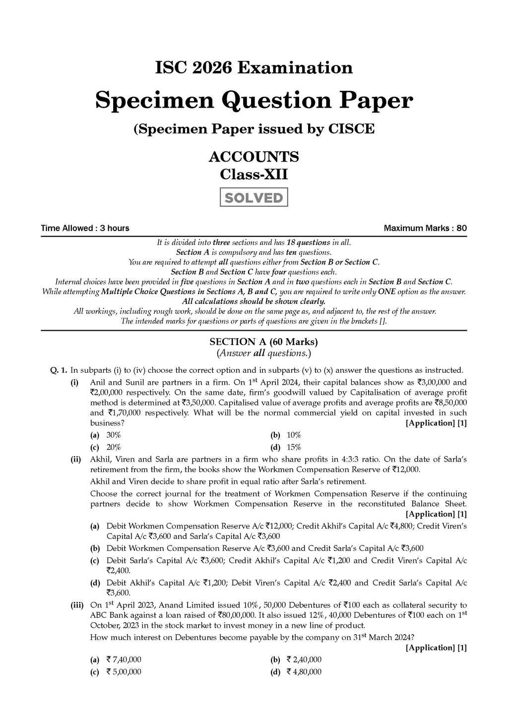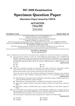 Every subject, ISC Sample Question Paper Class 12 Commerce 2026, ISC Sample Question Paper Class 12 Economics 2026, ISC Sample Question Paper Class 12 English Language 2026, and ISC Sample Question Paper Class 12 English Literature 2026, has been prepared after thorough examination of the current CISCE syllabus and question patterns. The ISC Specimen Paper Class 12 Accounts 2026 has been utilized as a framework to cover all the new typologies like Case-Based, Data-Driven, and Competency-Based Questions. These types of questions construct a solid conceptual framework while enhancing your application and analysis skills, crucial in attaining top marks.