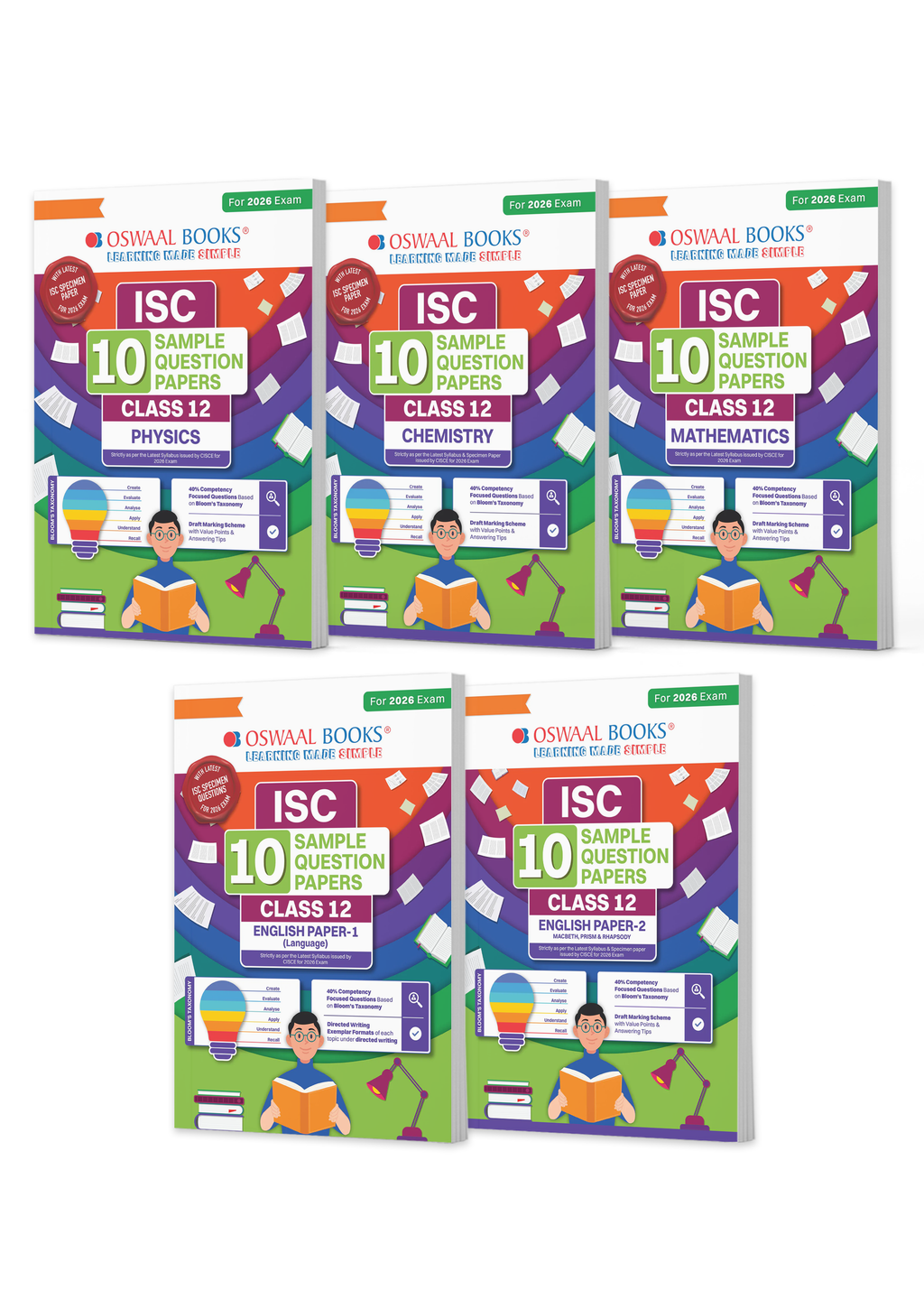 Studying for your ISC Class 12 Board Exams 2026 seems tough, but not when you have this entire set with you! The Oswaal ISC 10 Sample Question Papers Class 12 (Set of 5 Books) for Physics, Chemistry, Mathematics, English Language, and English Literature is developed to make students study efficiently, revise intelligently, and perform with confidence in final exams. Complemented by the new CISCE Specimen Paper 2026, this set makes sure your practice is in line with the exact paper pattern and marking scheme to be followed in the board exams.