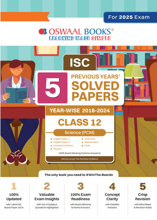 ISC 5 Previous Year Solved Papers Class-12 | Year Wise 2018-2024 | PCM (Physics, Chemistry, Mathematics, English 1, English 2, Hindi, Computer science) For 2025 Board Exam