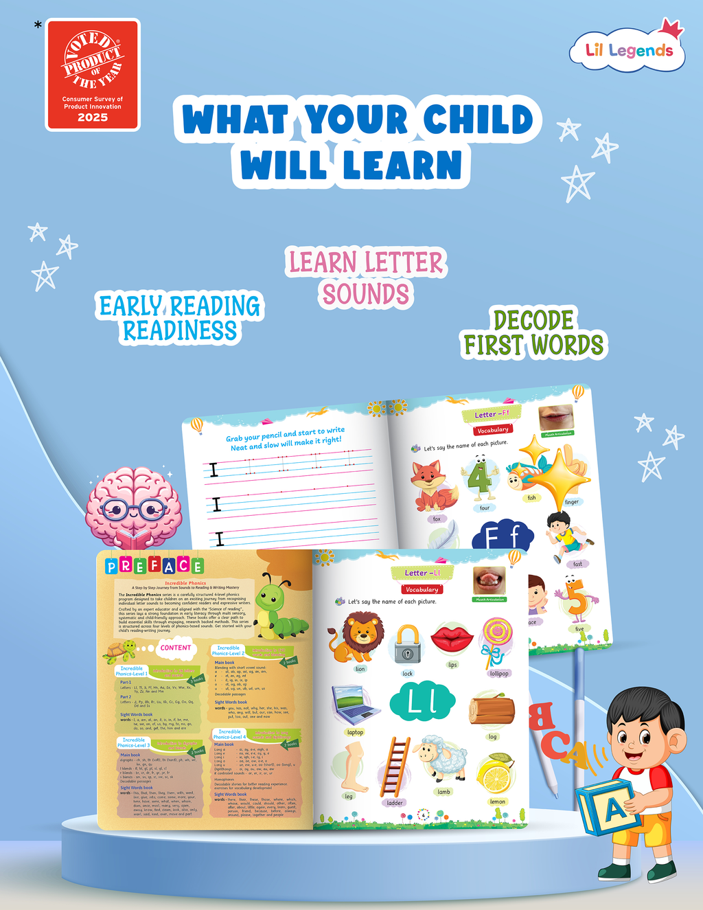 Give your child a joyful introduction to reading with the Lil Legends Phonics Level 1 Part 1 workbook - a thoughtfully designed early-learning resource created for young beginners aged 3 to 6.
