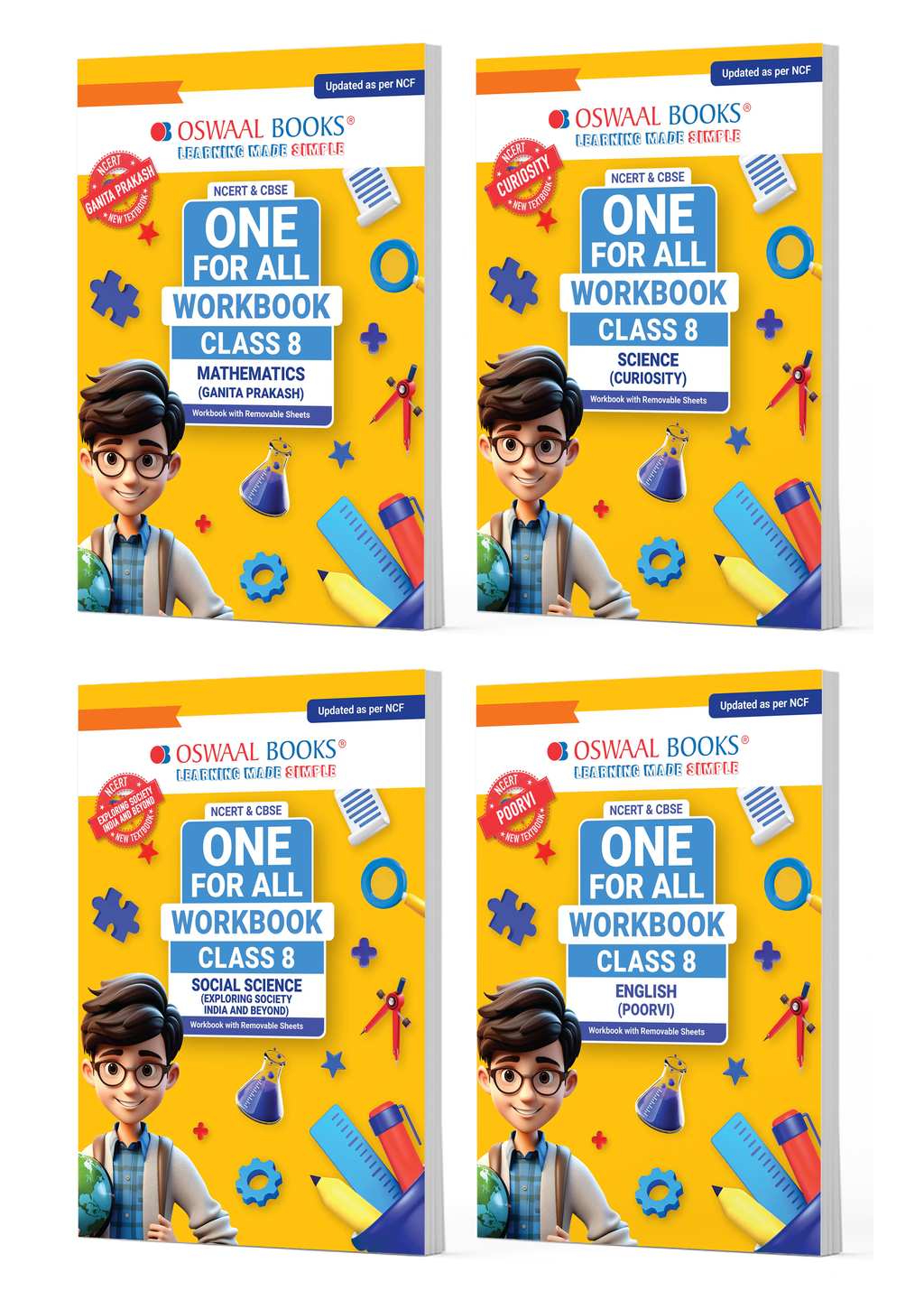 NCERT & CBSE One For All Workbook For Class 8 | Mathematics | Science | Social Science | English | Updated As Per NCF | MCQ's | VSA | SA | LA | Set Of 4 Books | For Latest Exam