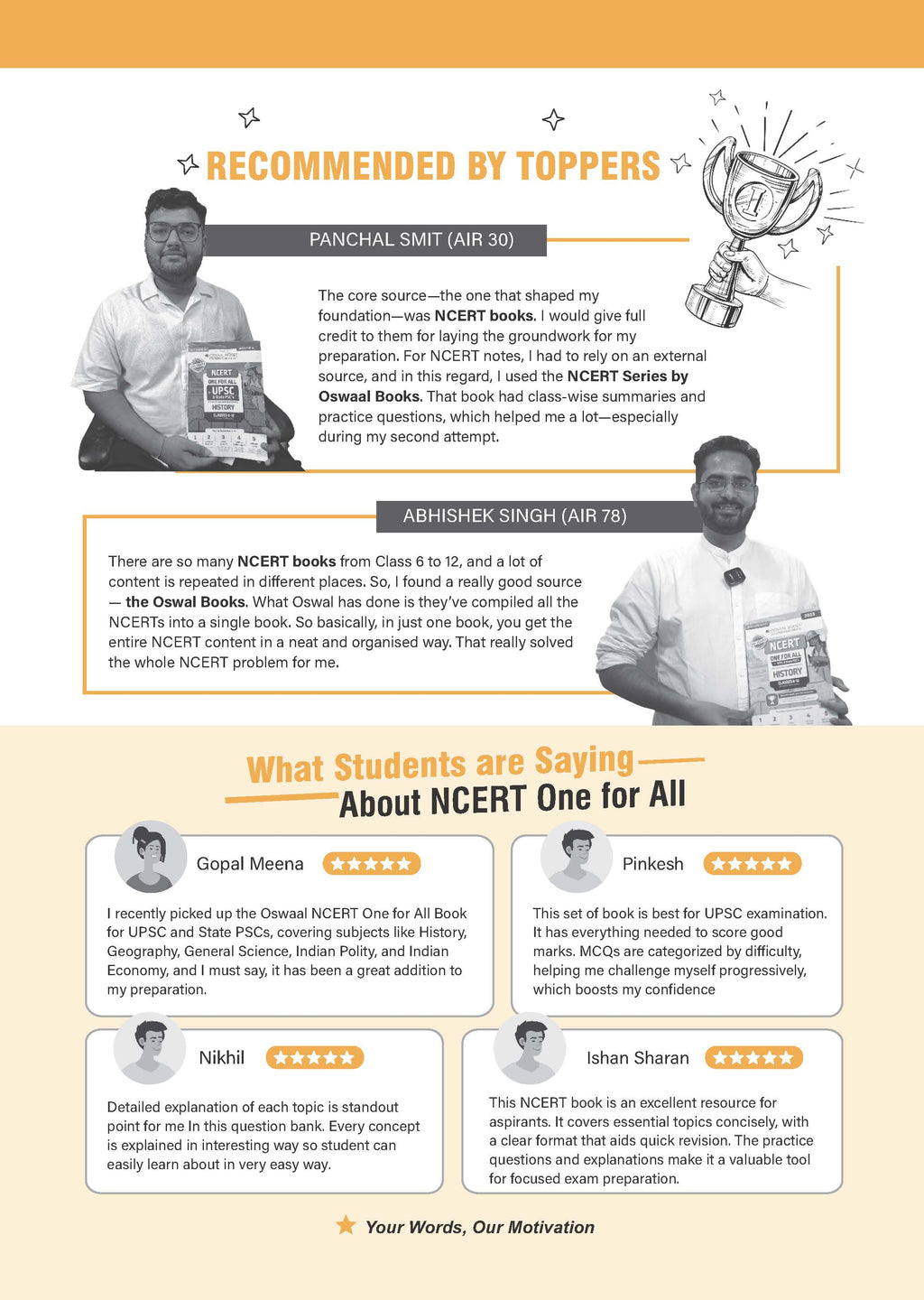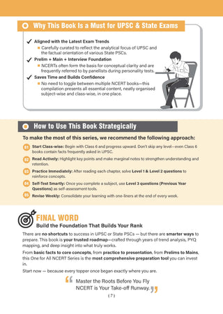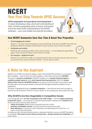Benefits of the book which distinguish it from others:• 100% Concept Clarity: All questions solved with detailed explanations.• Smart NCERT Summaries: Crisp chapter-wise revision notes for quick recall.• 1500+ Practice MCQs: Moderate, Advanced & Previous Year Questions covered.• PYQs as One-Liners: Instant recall of past questions across exams.• Latest NCERT Coverage: Includes all new chapters from the Latest 2025 – 2026 NCERT Textbooks.• Quick Glossary: Key terms compiled for rapid final revision.