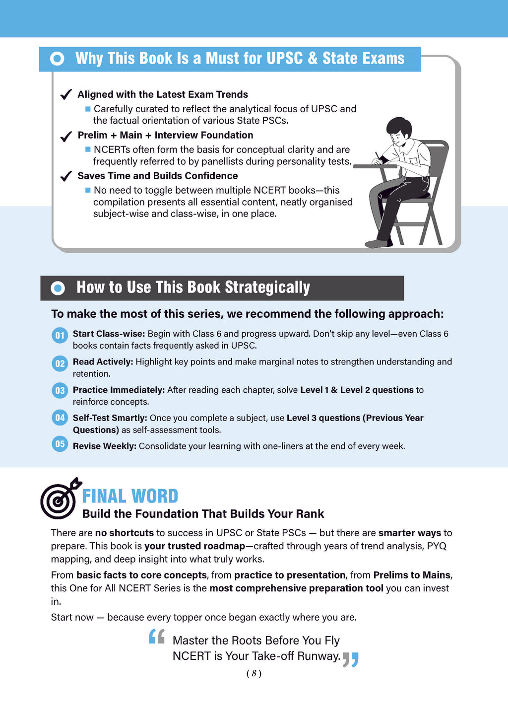 This is a specially designed book for UPSC and is a compilation of the Geography chapters of Class 6 to Class 12 NCERTs, old and new editions. Thus, you do not have to go through each and every NCERT separately, this one book has everything under one roof.