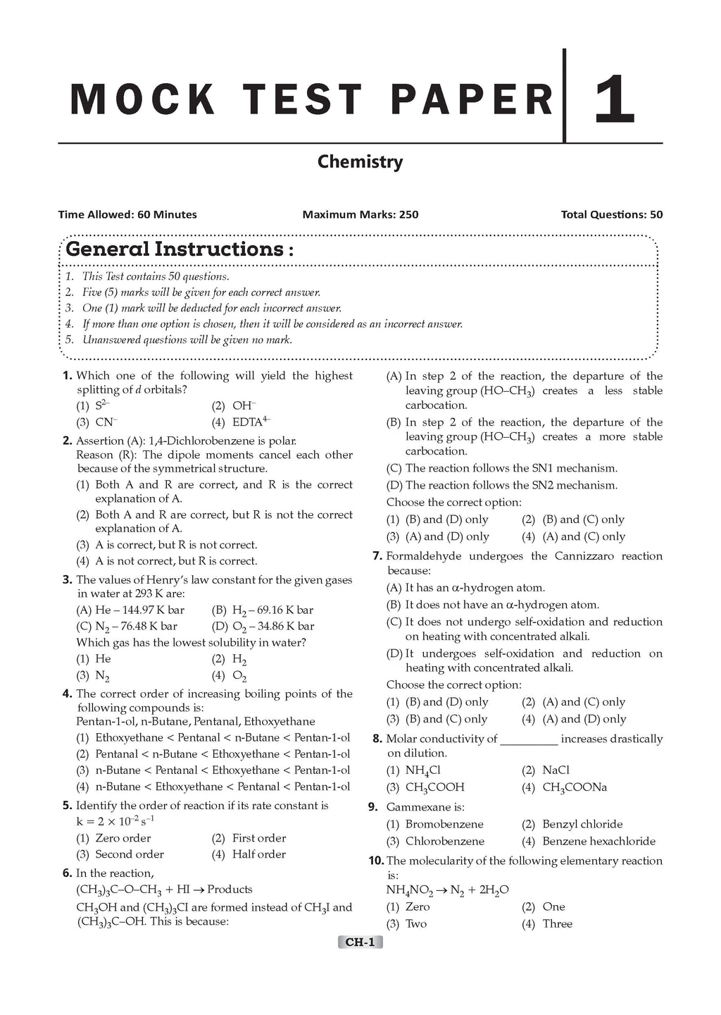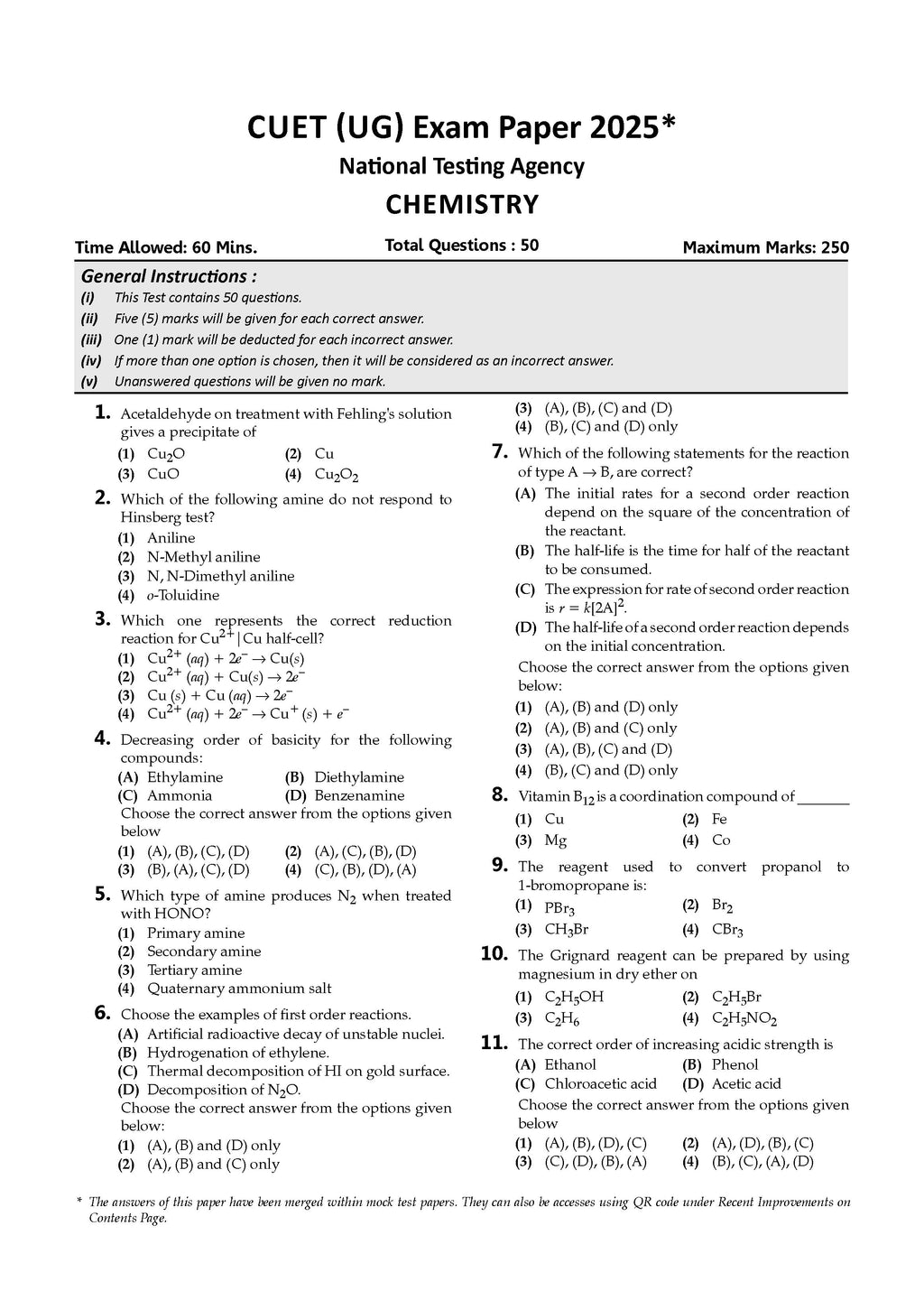 NTA CUET (UG) 10 Mock Test Papers Chemistry For 2026 Exam (Section –II) (as per latest 27 Dec., notification) | 500+ MCQs for Practice | Includes 2025 Paper- fully solved | With Oswaal AI