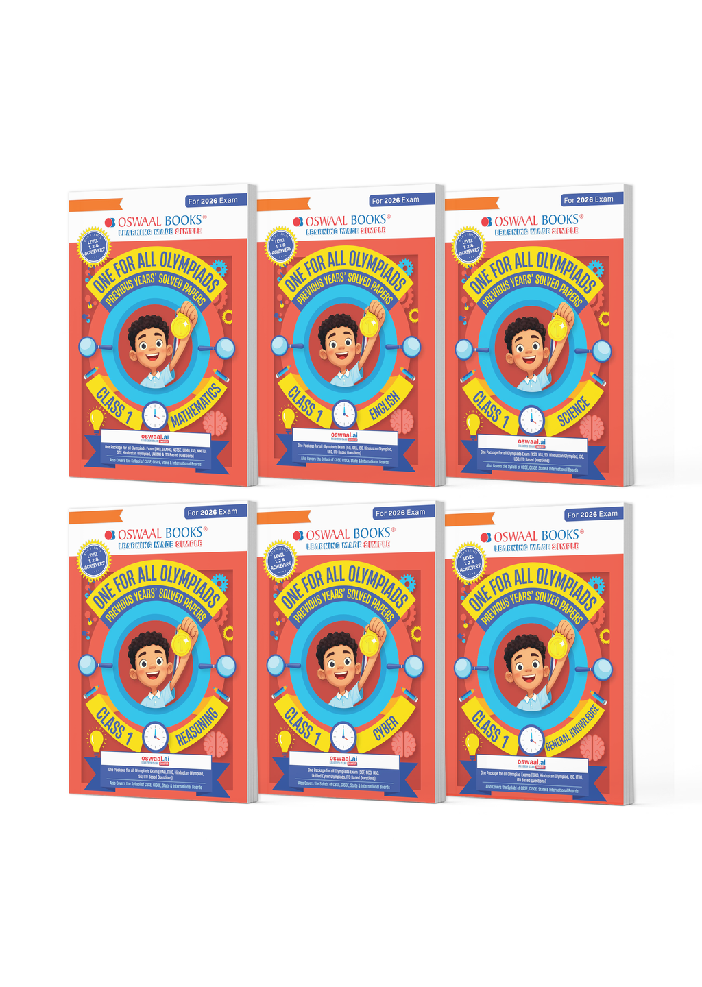One For All Olympiad Chapter-wise Previous Years' Solved Papers, Prep-Guide Class 1 (Set of 6 Books) Maths, English, Science, Reasoning, Cyber & General Knowledge (For 2026 Exam)