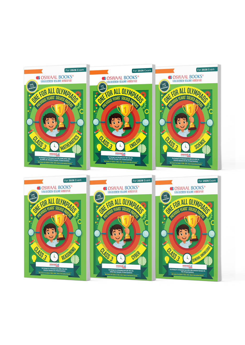 One For All Olympiad Chapter-wise Previous Years' Solved Papers, Prep-Guide Class 3 (Set of 6 Books) Maths, English, Science, Reasoning, Cyber & General Knowledge (For 2026 Exam)