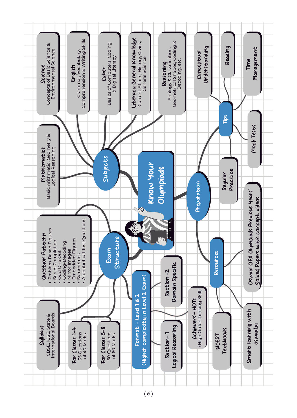What’s Inside?• Targeted Olympiad Practice: Chapter-wise, topic-wise questions aligned with CBSE, CISCE, State & International Boards ensure relevant, all-round Olympiad exposure.• Chapter-wise Mind Maps: Enable quick revision by organising key ideas in an easy-to-remember visual format.• Graded Difficulty Levels: Level 1 builds strong basics, Level 2 improves logic, speed & accuracy, while Achievers’ Level challenges high-order thinking.• Chapter-wise Worksheets: Enable systematic practice, helping students master one chapter at a time.• Level 1 & 2 Practice Papers: To familiarise students with real Olympiad exam patterns and boost confidence.