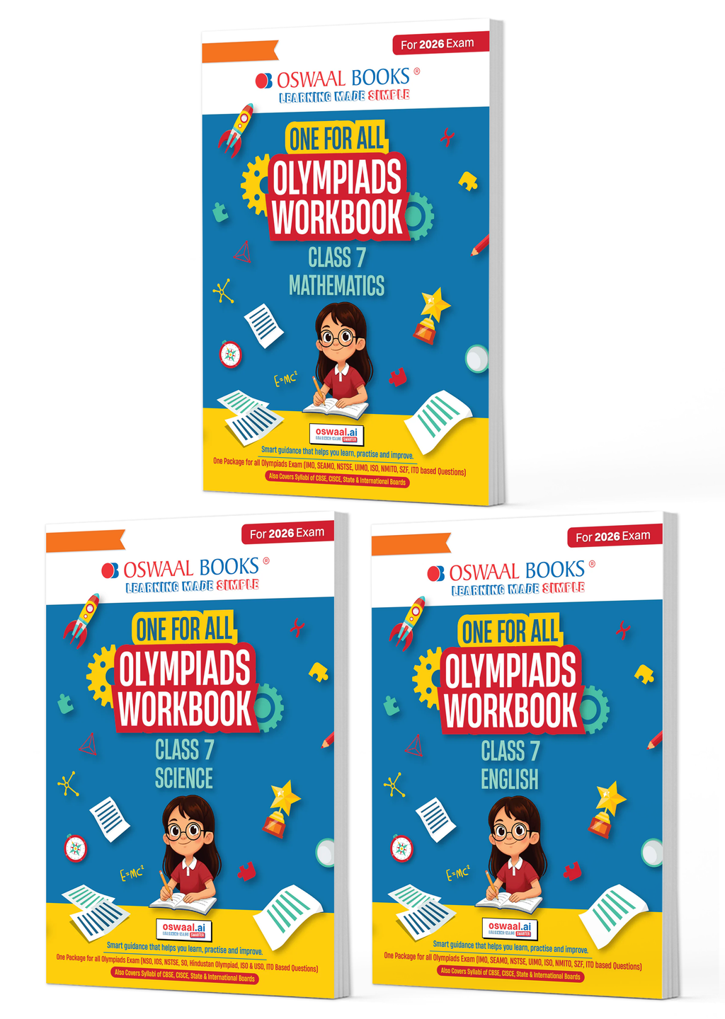 One For All Olympiad Workbook Class 7 (Set of 3 Books) Maths, Science & English For 2026 Exam