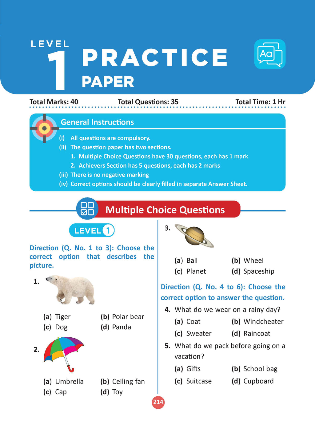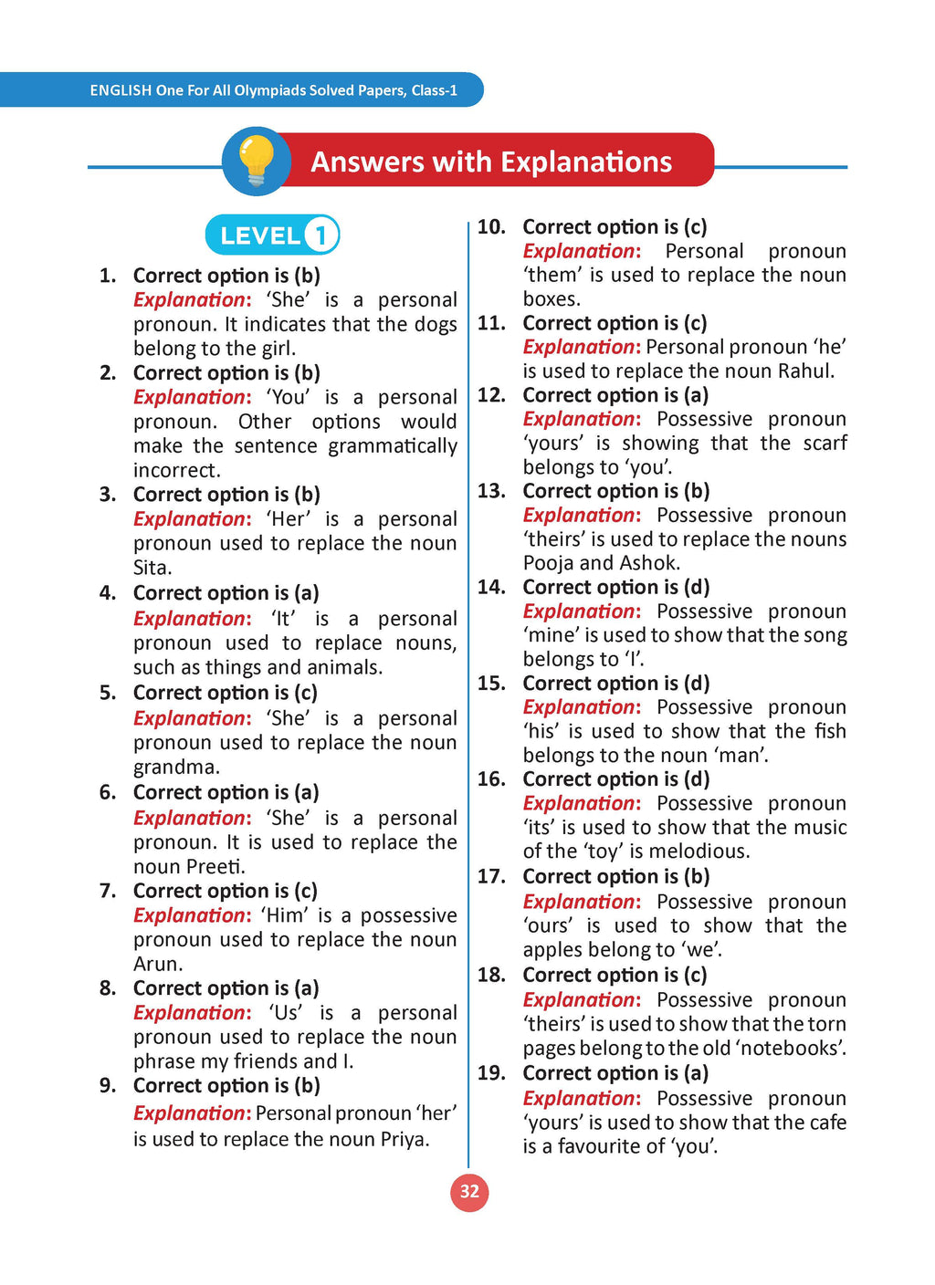 One for All Olympiads Chapter-wise Previous Years' Solved Papers, Prep-Guide (with Level 1, 2 & Achievers Section) Class 1 English For 2026 Exam