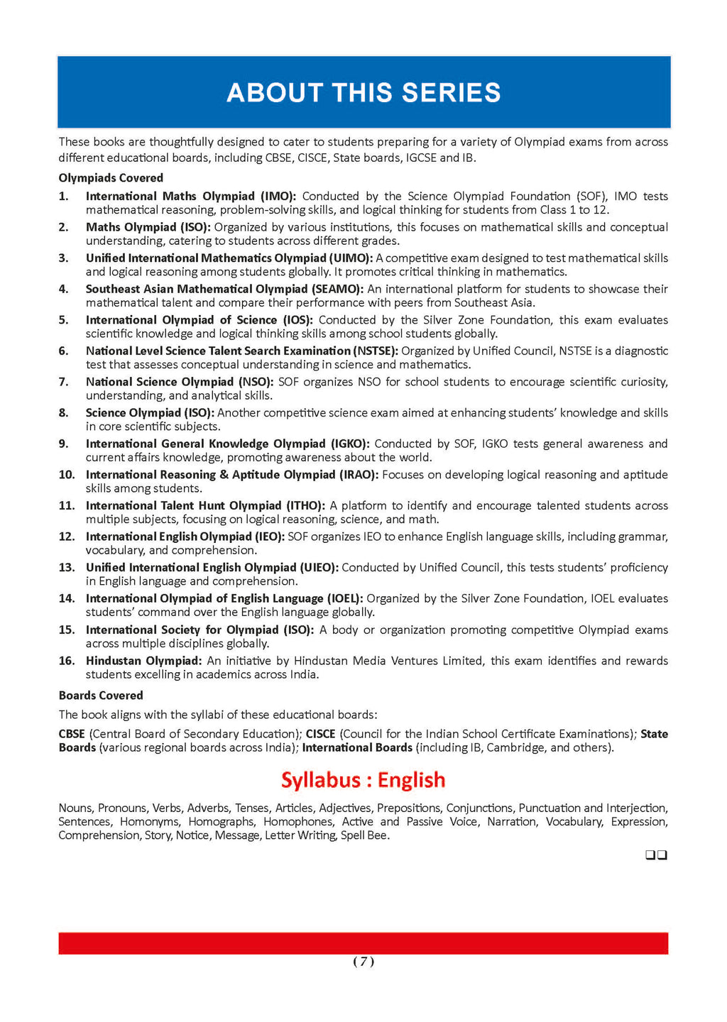 100% Exam Readiness with Previous Years’ Questions, include Questions for all leading Olympiads like SOF(IMO,NSO, IEO & more), Silverzone, Hindustan & Other Olympiads. Cover School, National & International Olympiads.