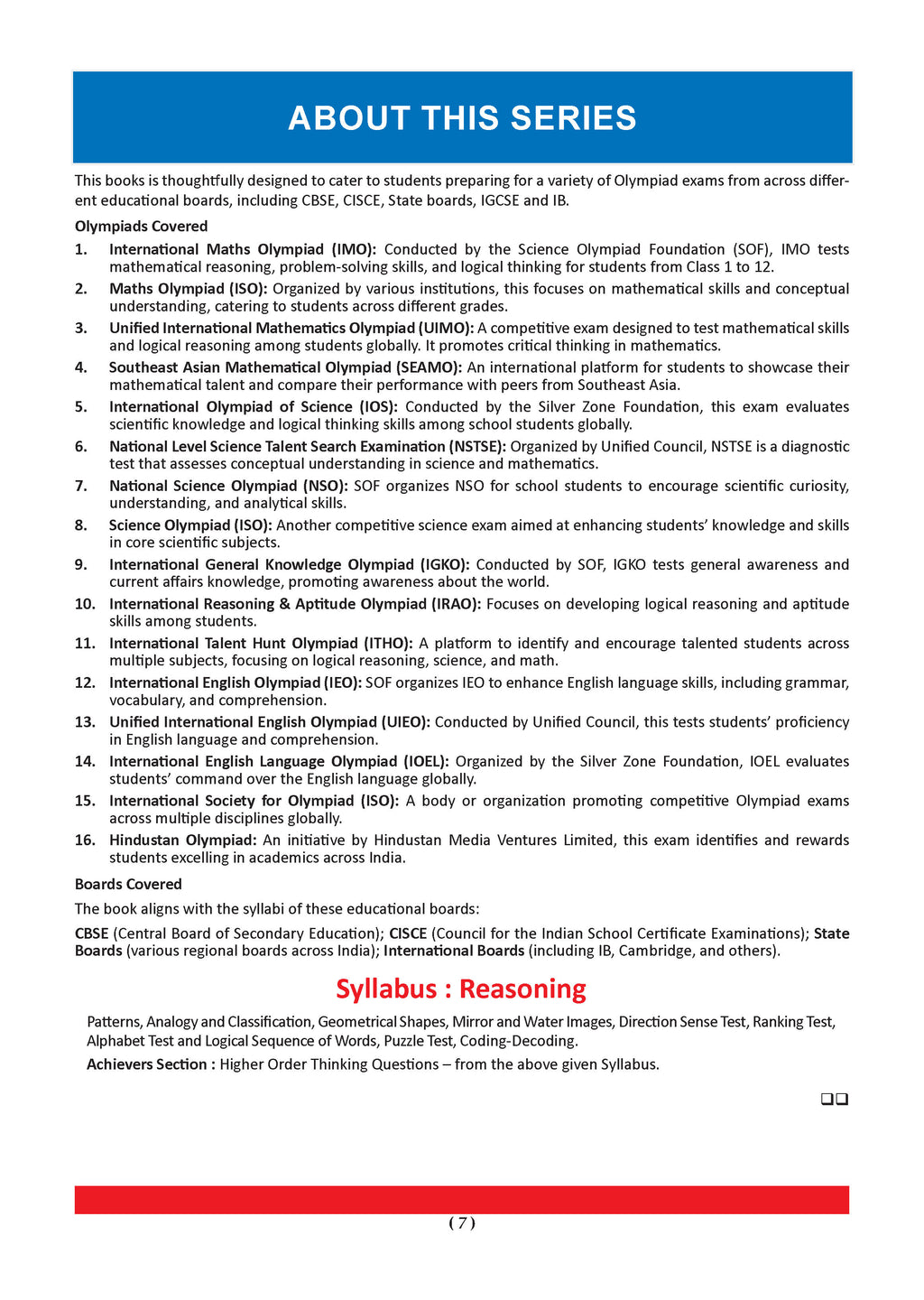 100% Exam Readiness with Previous Years’ Questions, include Questions for all leading Olympiads like SOF(IMO,NSO, IEO & more), Silverzone, Hindustan & Other Olympiads. Cover School, National & International Olympiads.